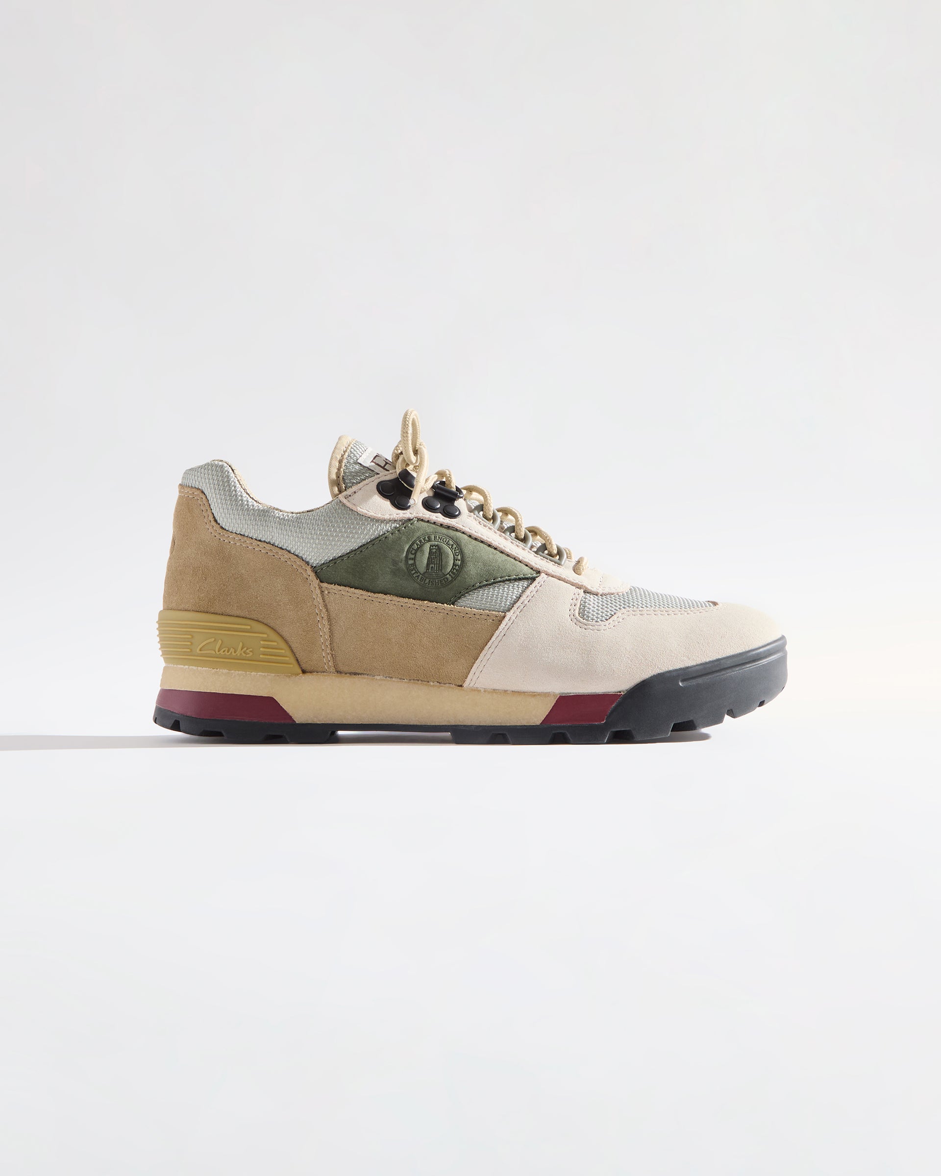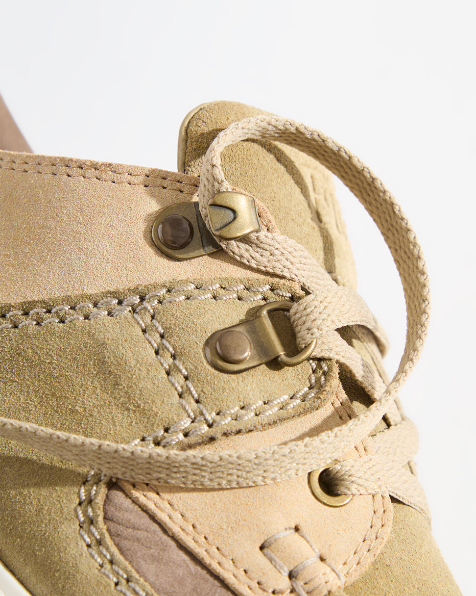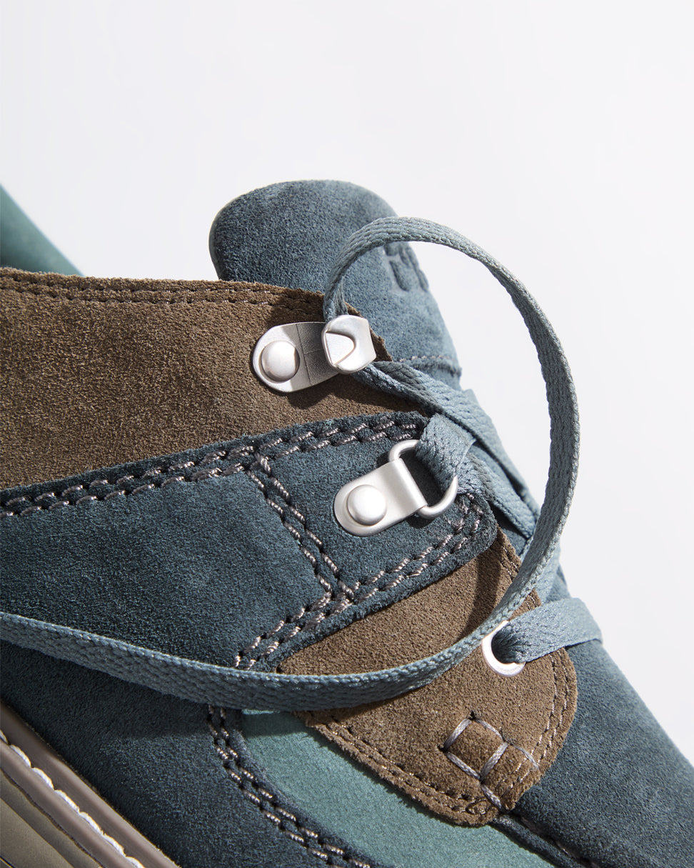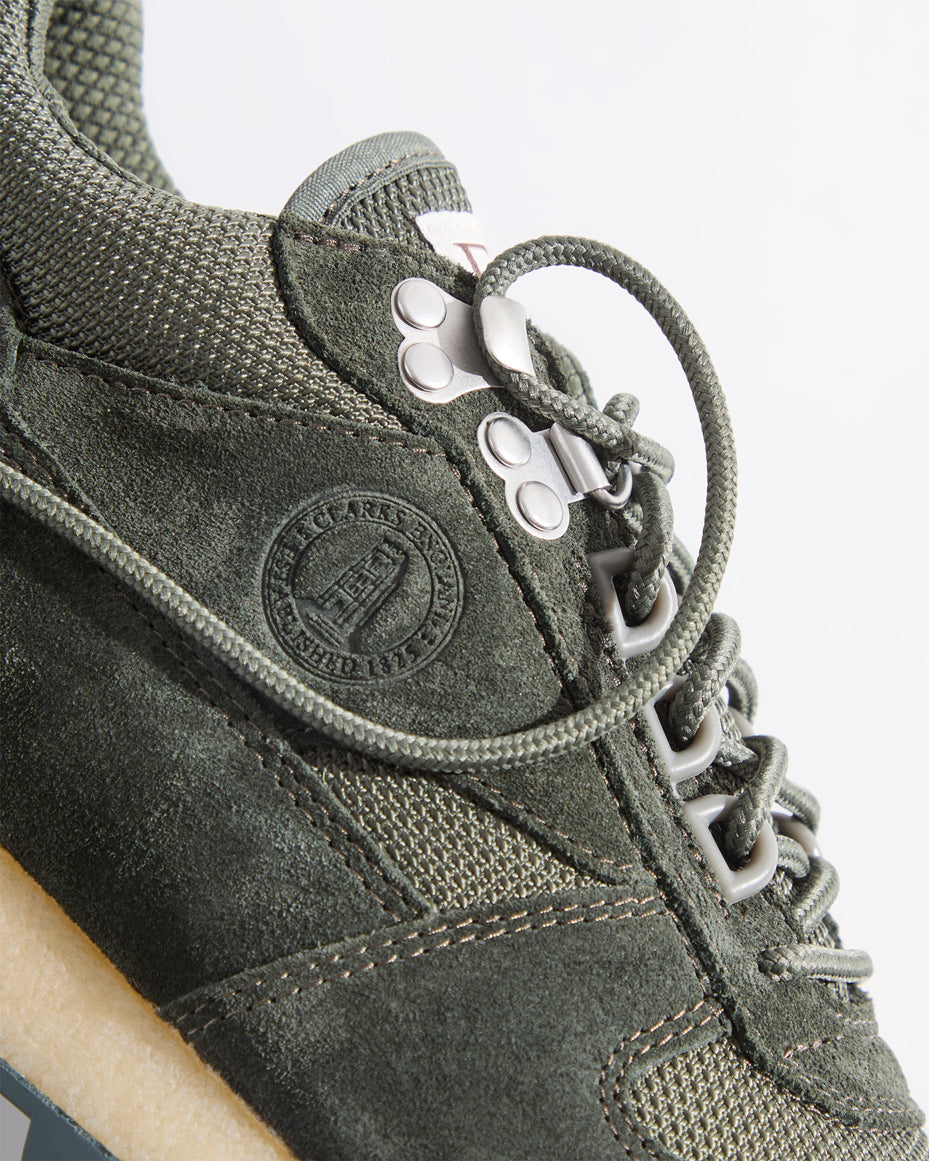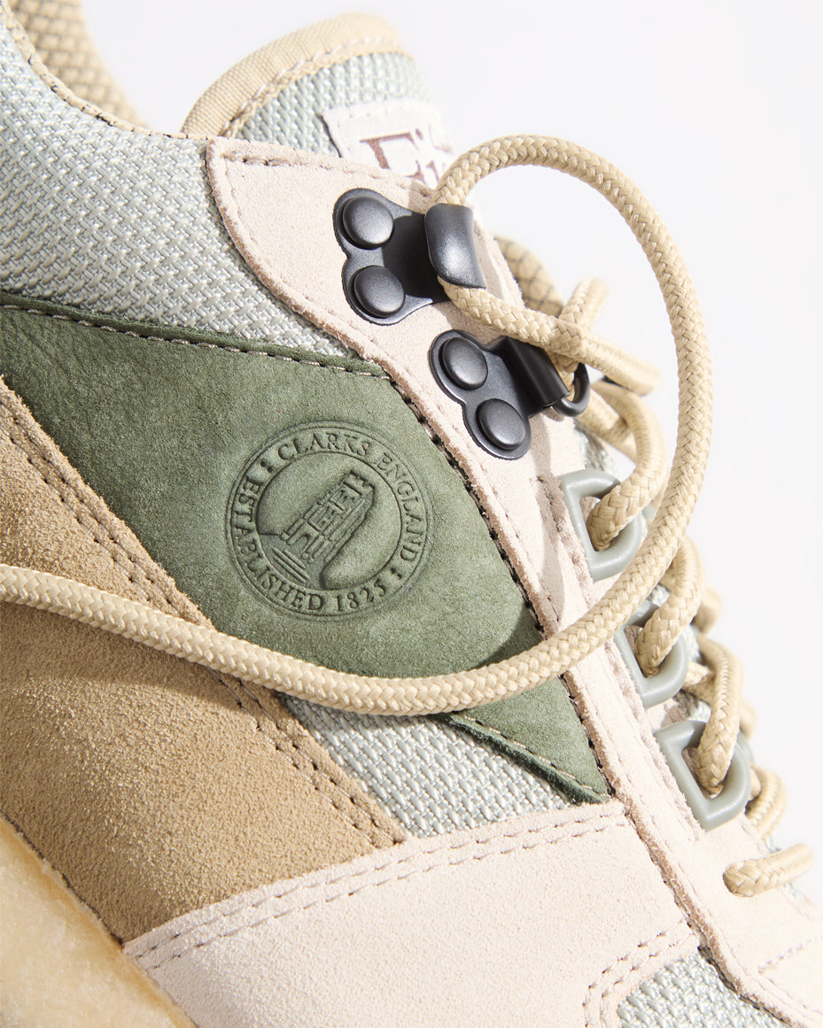 新作のLaddowは、スエードアッパーにバリスティックナイロンのオーバーレイを組み合わせ、足首周りにパッドを施したデザインで登場。メタルアイレットを採用し、カスタムクレープミッドソールとラバーアウトソールを備えています。