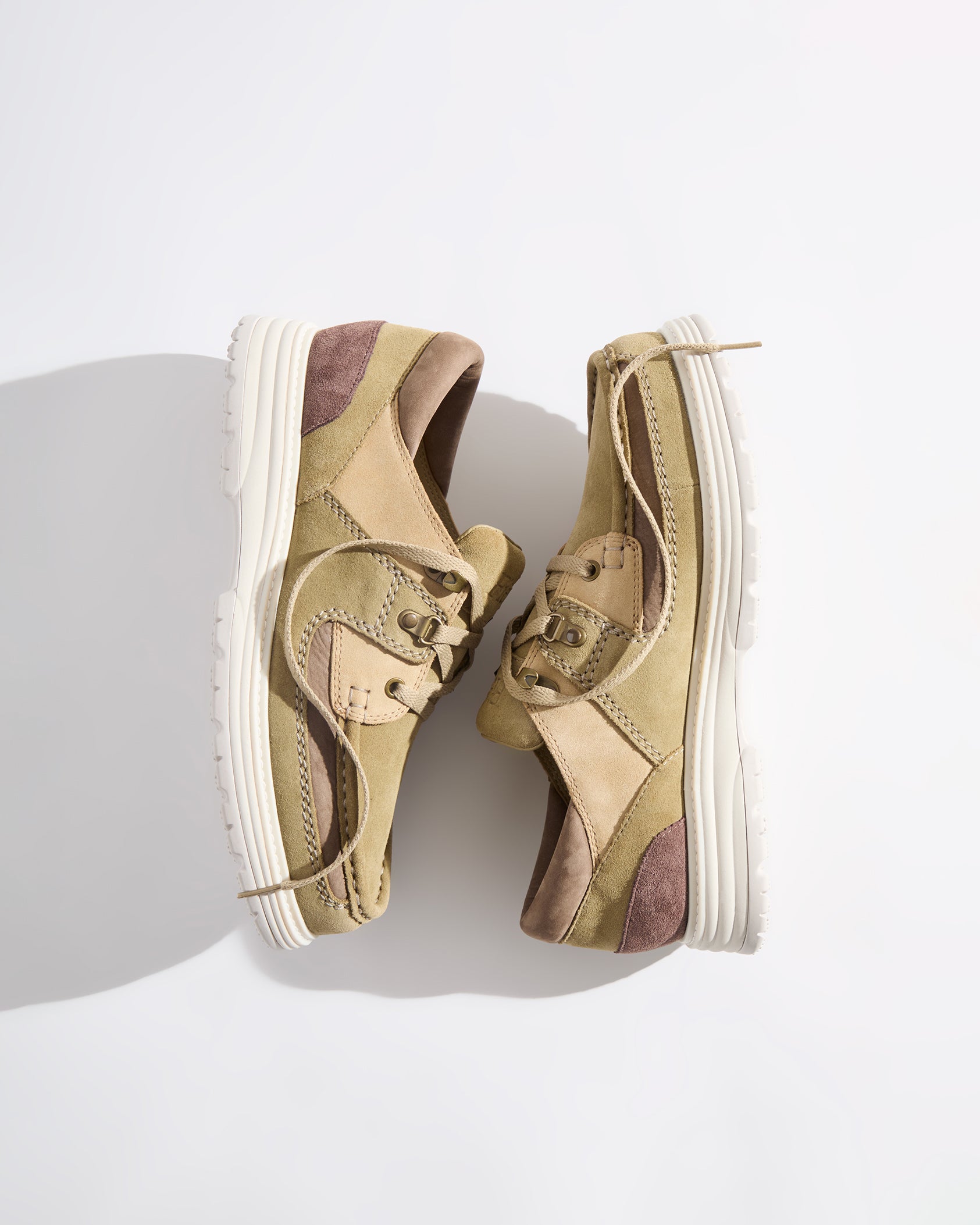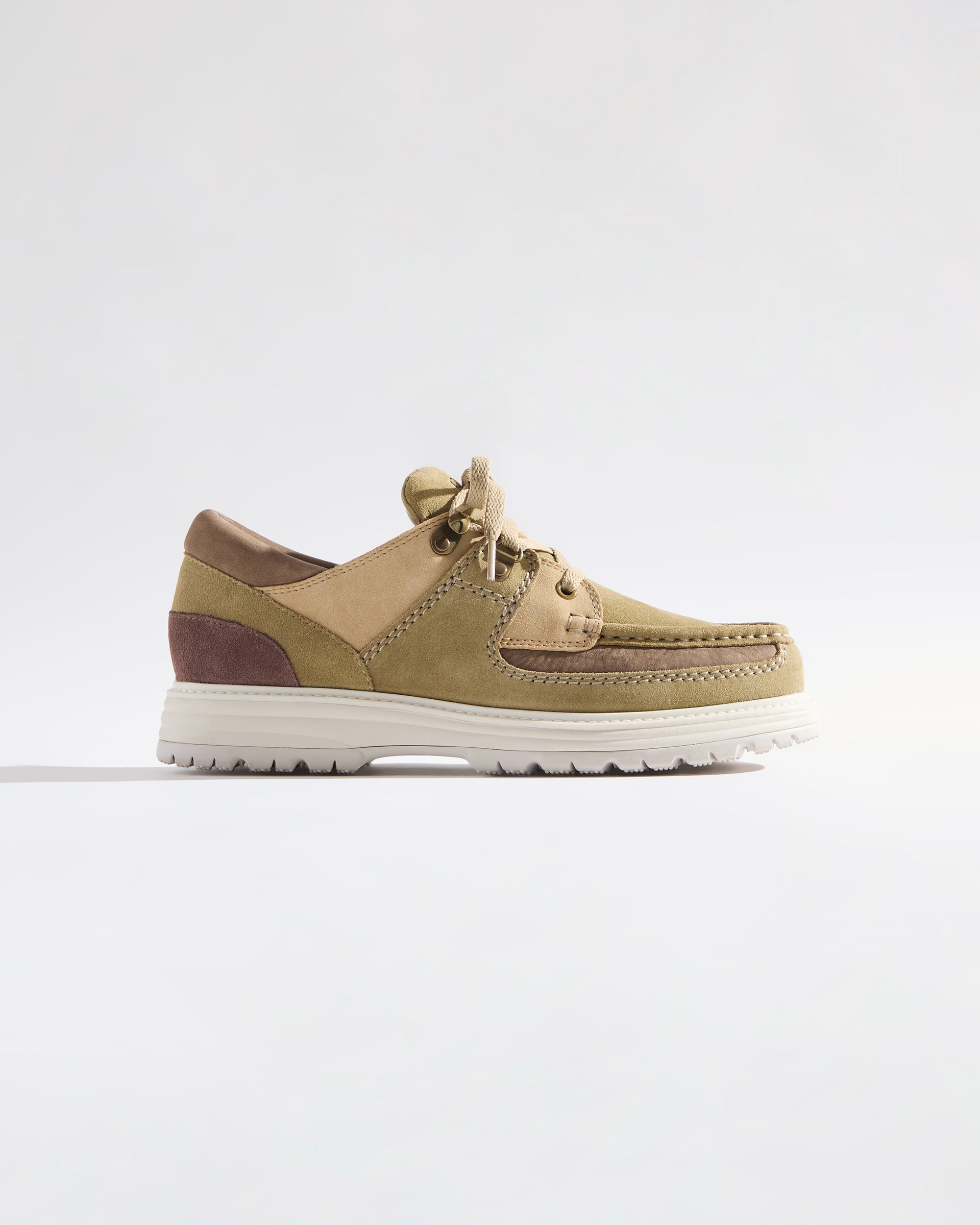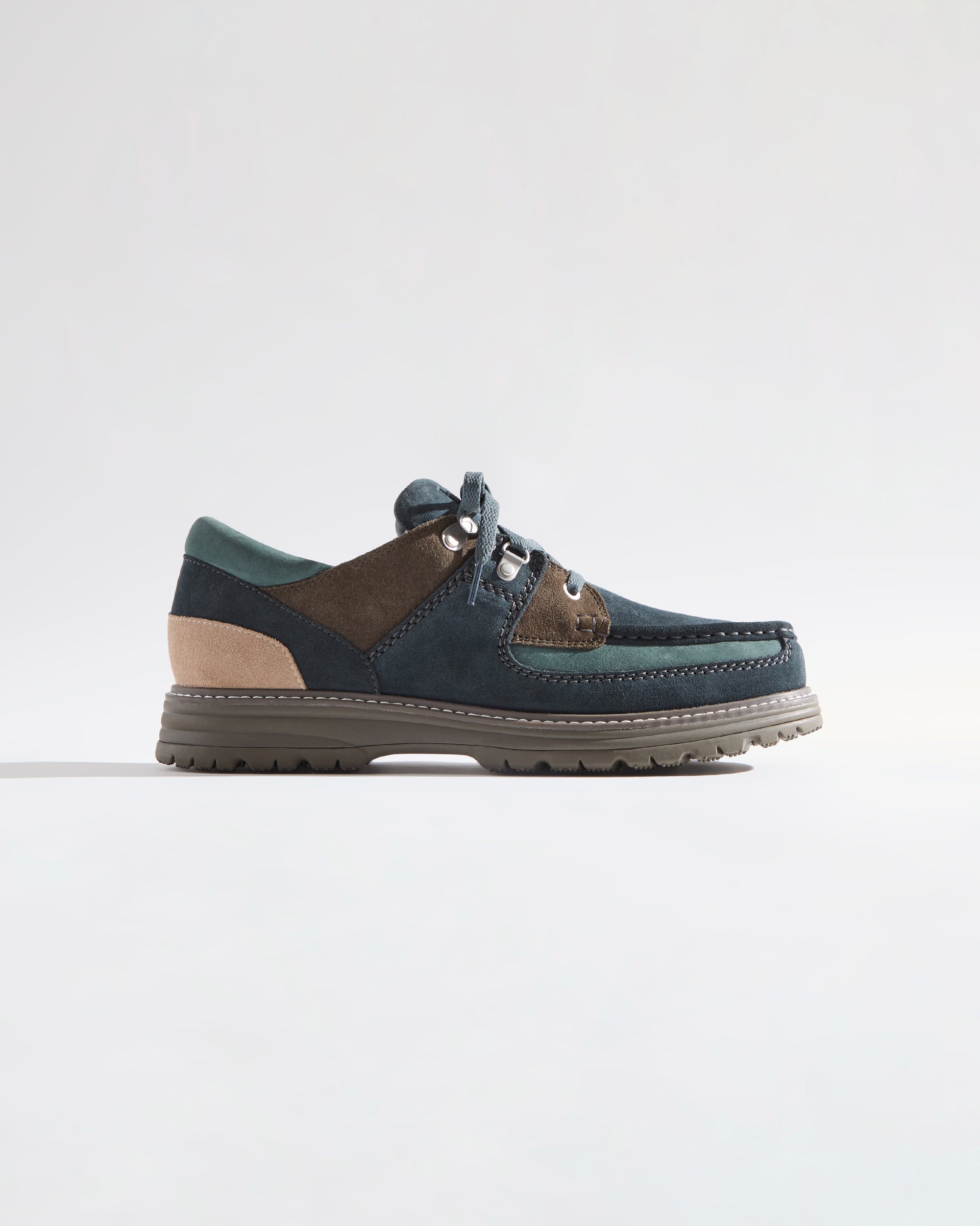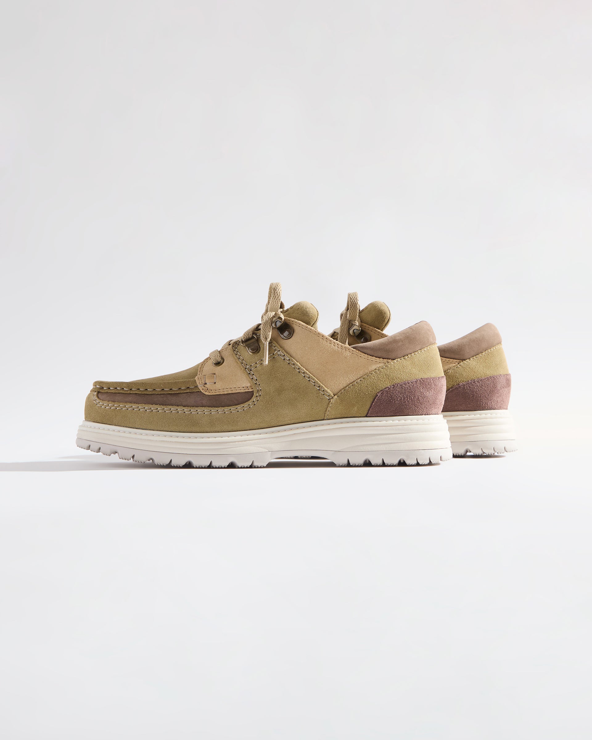 Sunderlandは、プレミアムスエードのアッパーにステッチ入りのオーバーレイを施し、ヌバックの履き口とレザーフォクシングを組み合わせたデザインで登場。ブラス製のハードウェアとマイクロファイバーの裏地を採用し、シーズナルカラーにアップデートしました。4種類のシューレースが付属します。