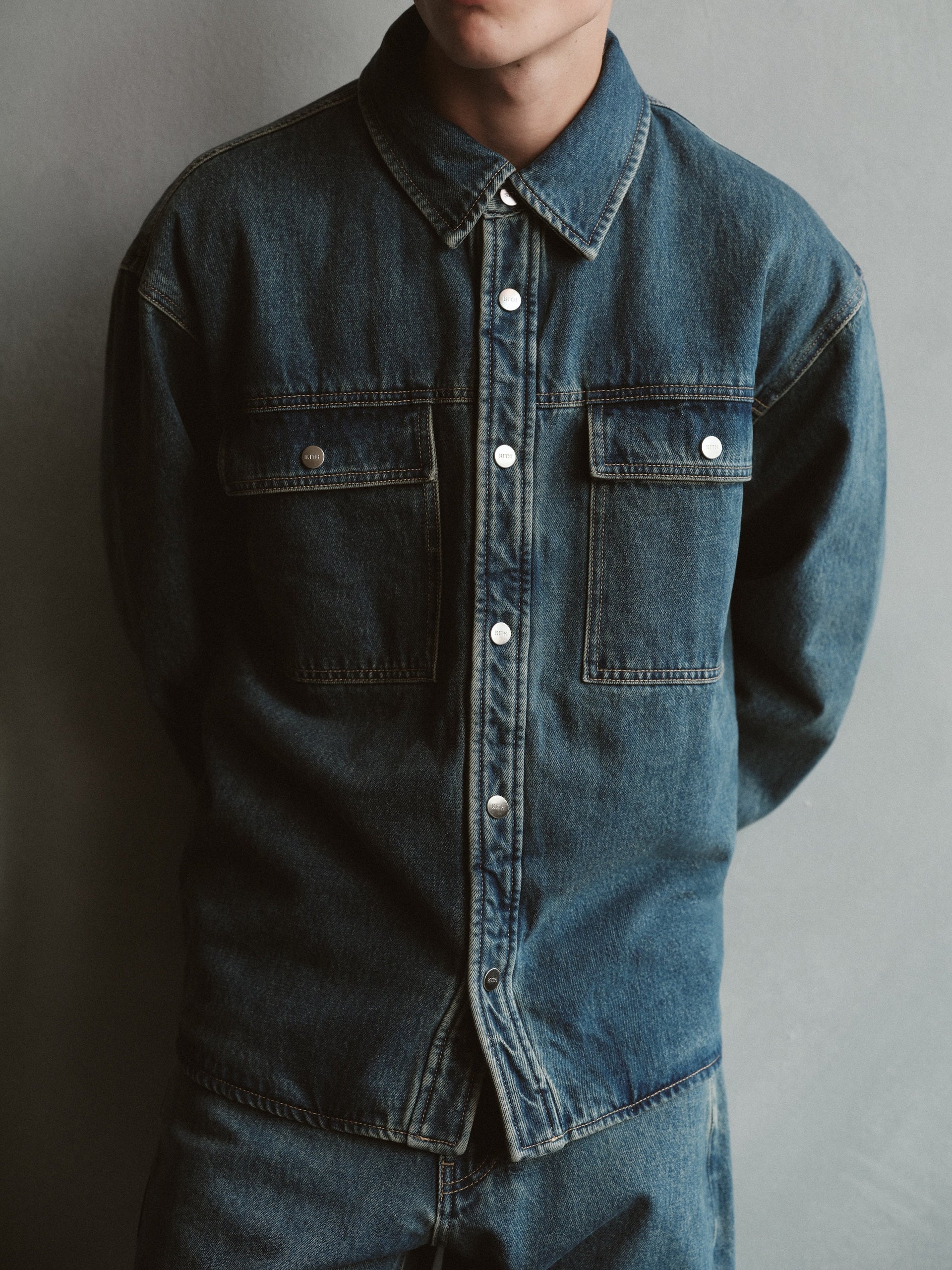 Highlighted by premium Japanese indigo utilized on the Twill Alonzo Jacket & the Webster Chill jean, featured in the deep Savin wash, shank hardware, and a ponyhair patch on the hem, our latest denim silhouettes are designed to be worn as a set or as separates. Explore staple silhouettes like the Apollo Shirt, the Webster Chill in lighter hues and studded variations, and the Varick Tapered Jean, along with styles that have a baggier, relaxed fit like the Prospect Grand and the Zane Denim Cargo Pant.
