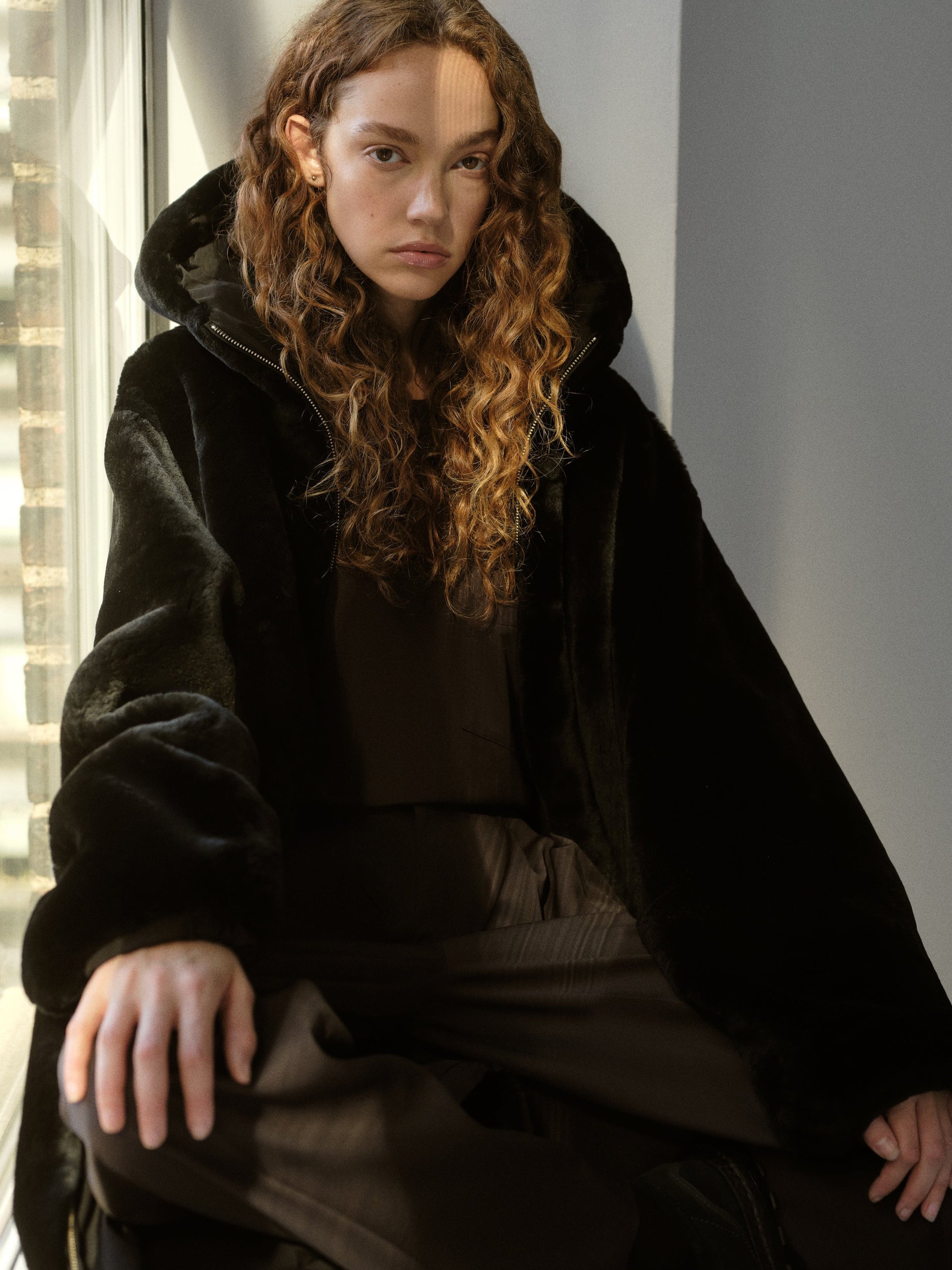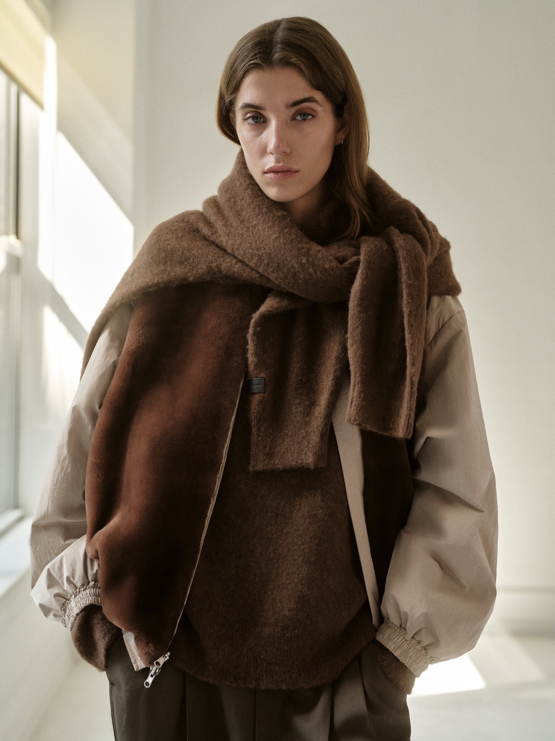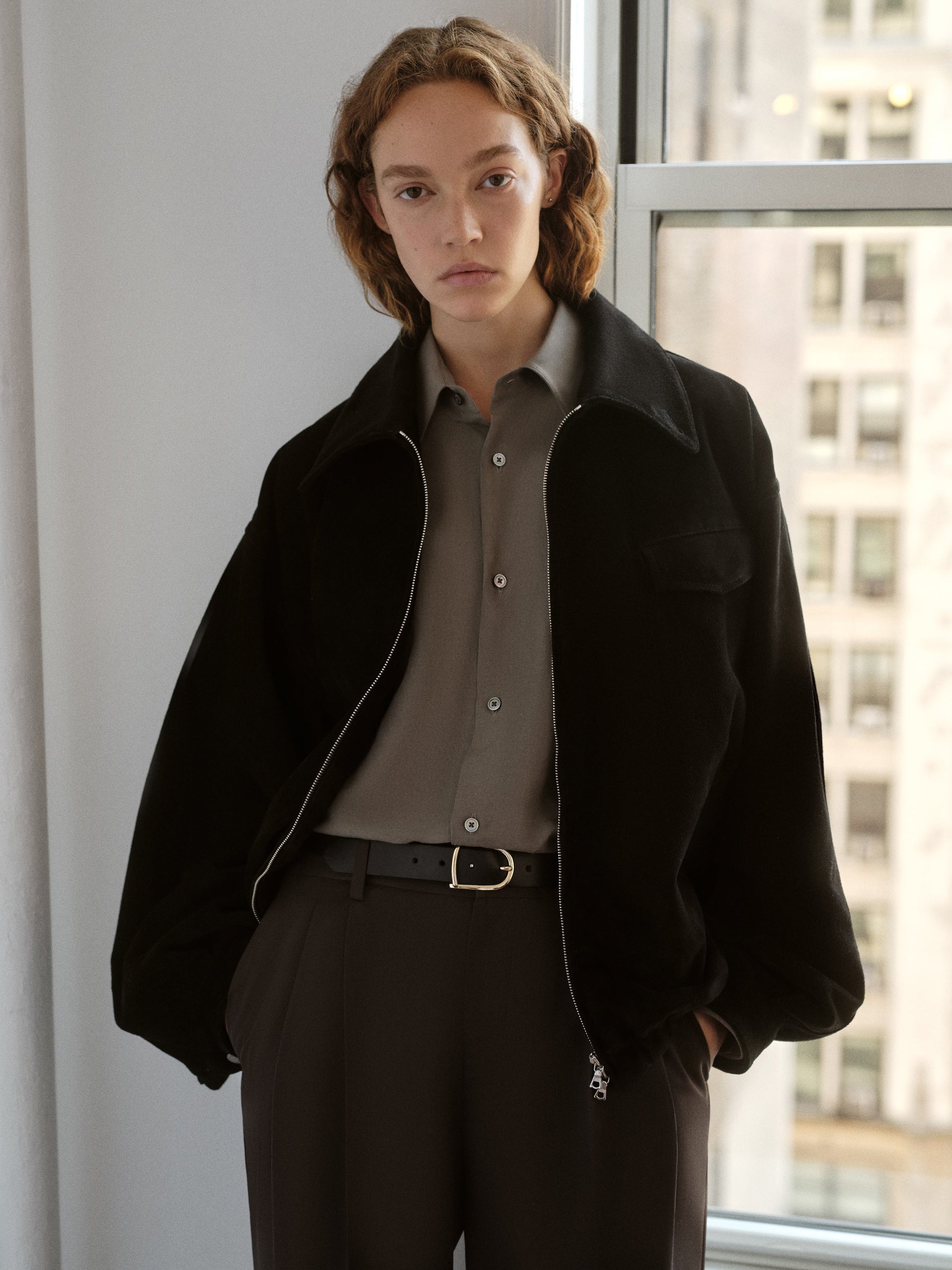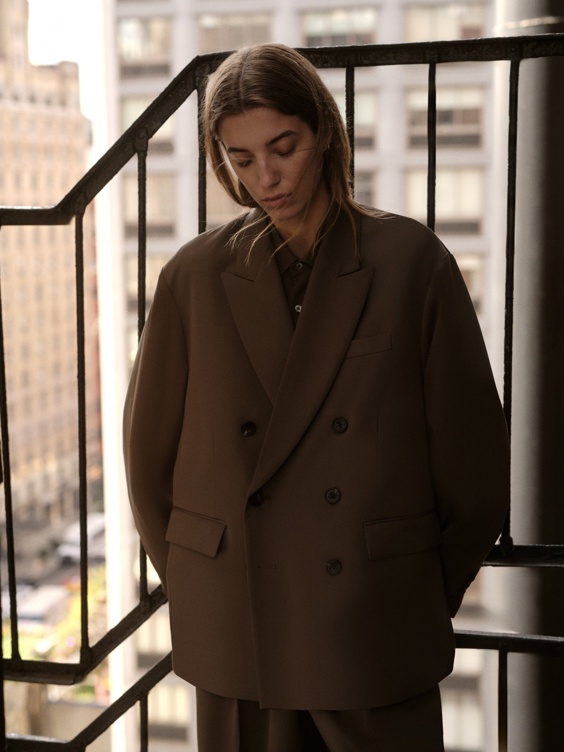 Comprising a mix of technical fabrics with cozy, upscale luxurious wool and knit blends, all styles are made in an updated, collaborative palette, comprising earth tones like Walnut, Everglades, and Kindling with staple Bright White and Black Beauty. Explore jackets designed for versatility like the Mouton Inner Reversible Parka and Jacket, tailored overcoats like the Double Lapeled Double Breasted Coat and the Oversized Double Breasted Blazer, and inner layers like the Linen Buttondown, the Alpaca Knit Crewneck Pullover, and the Oversized Pocket Tee. Material highlights include cashmere blends, sheep leather, and wool, each silhouette complete with discrete, tonal co-branding found only on a leather patch.