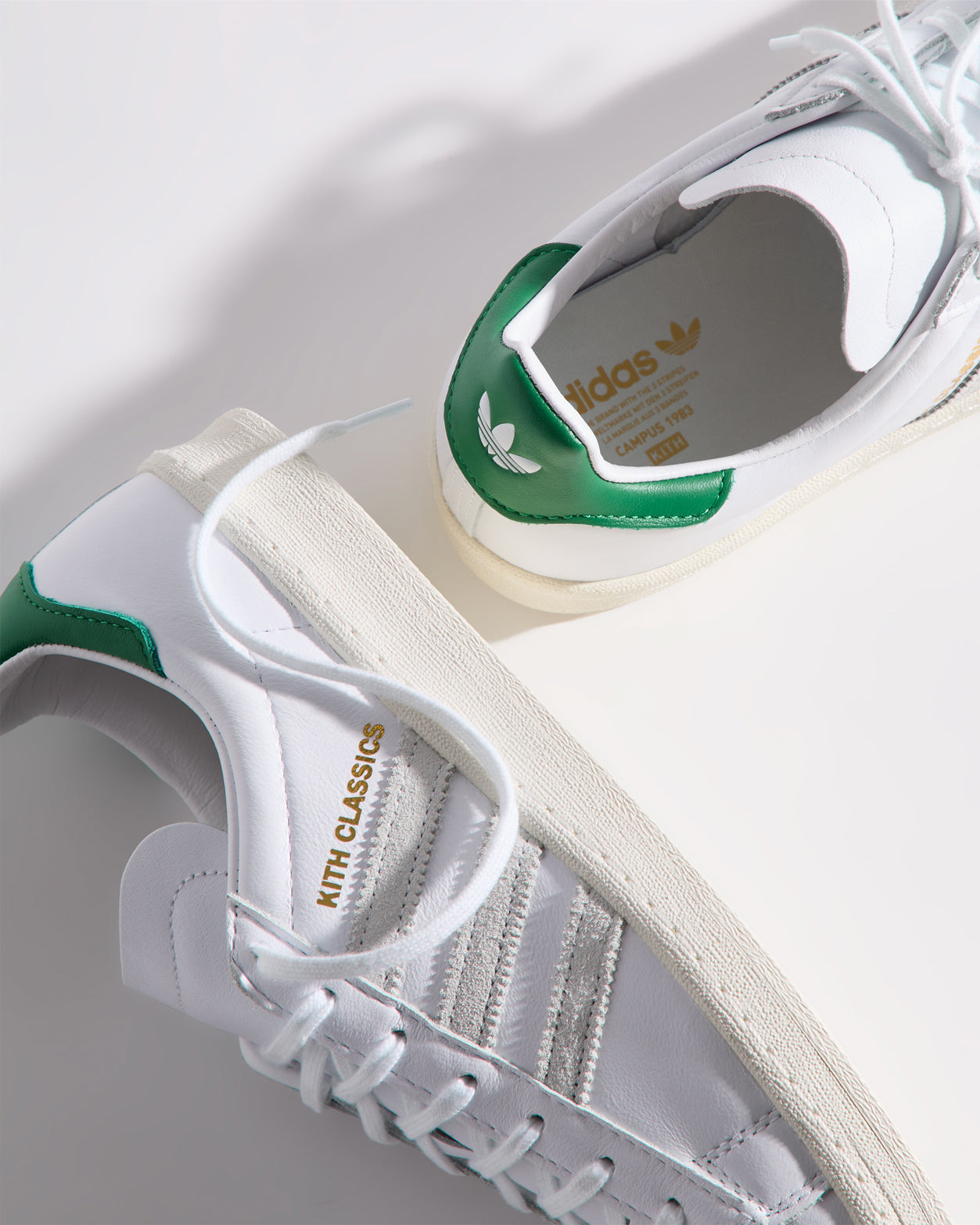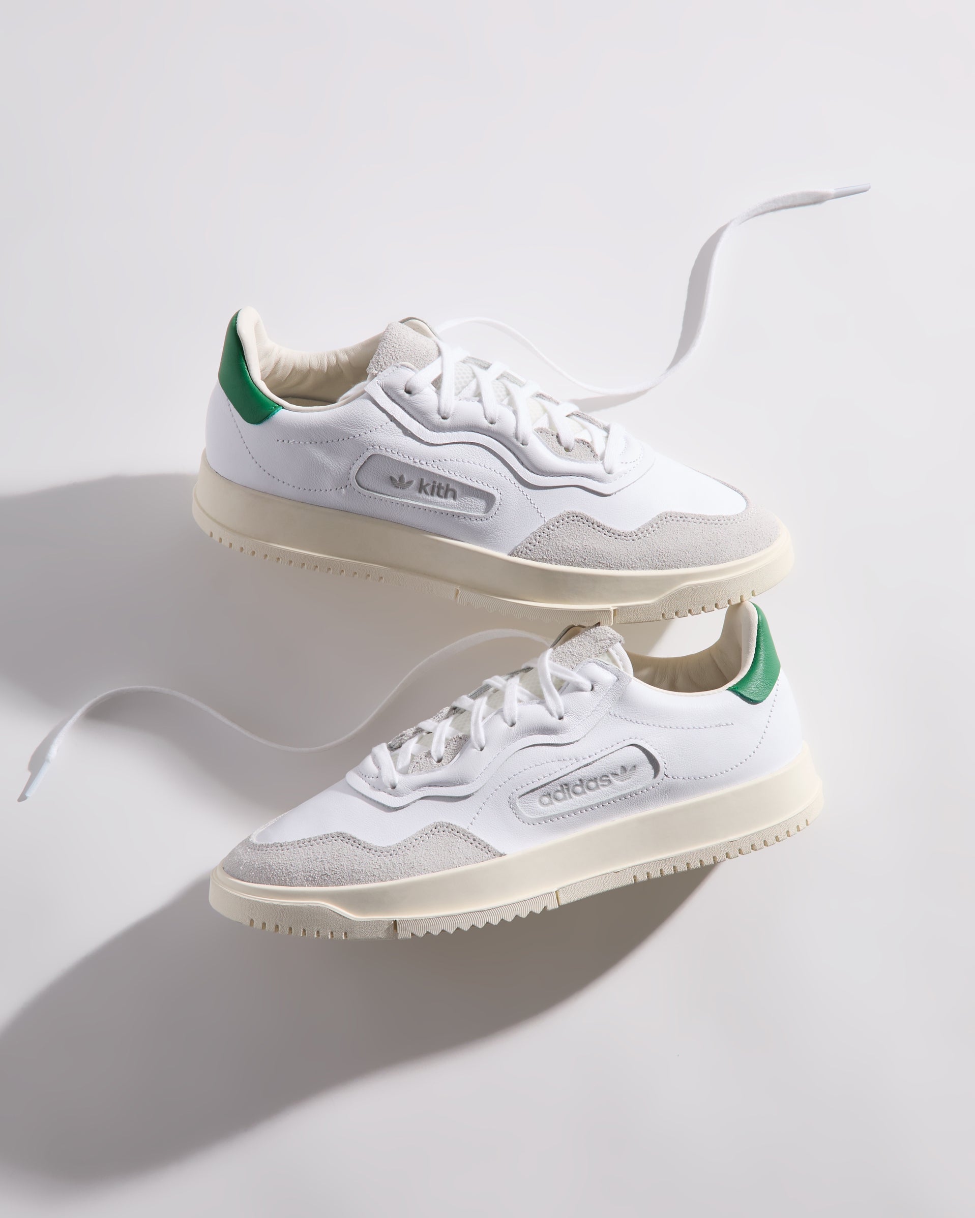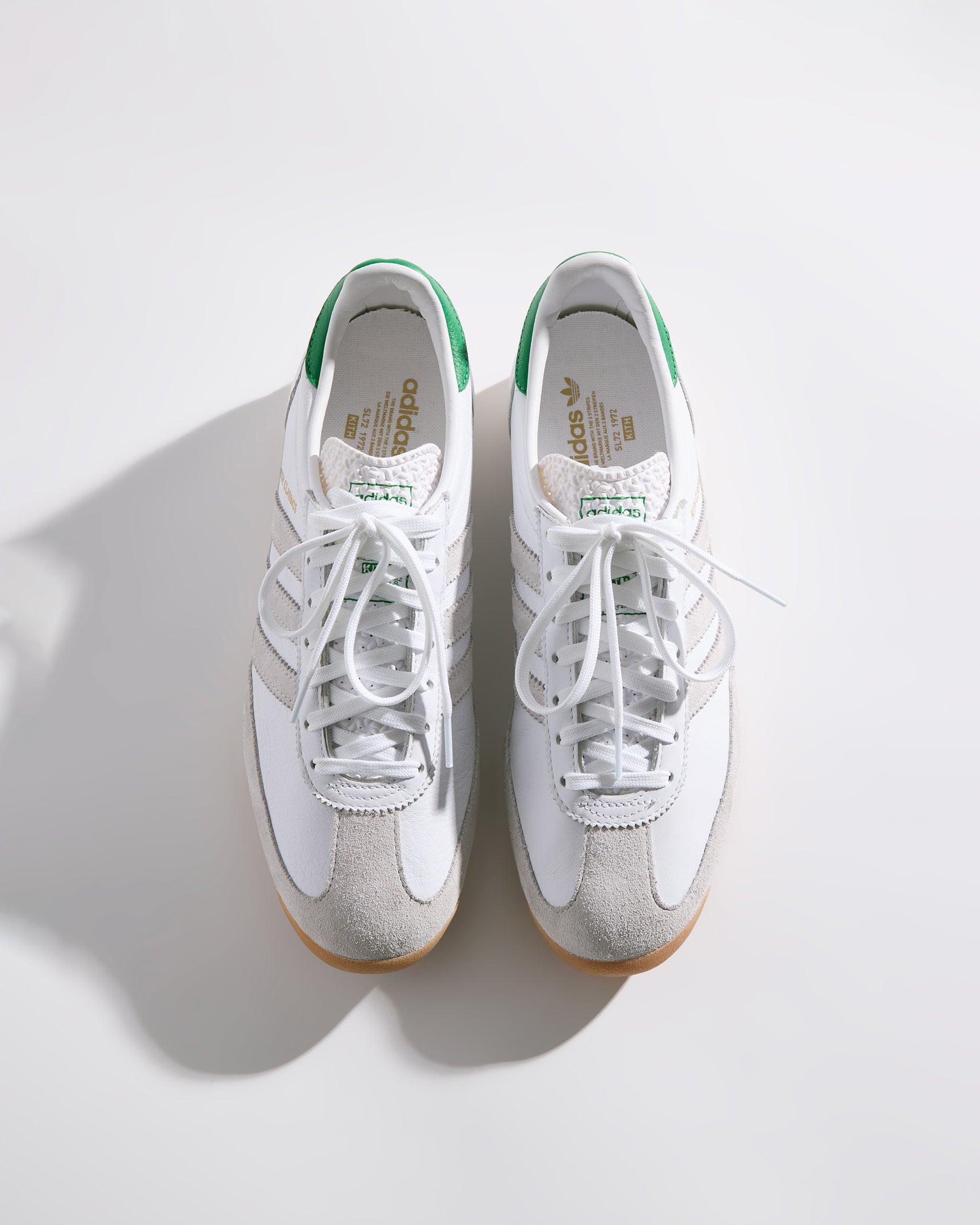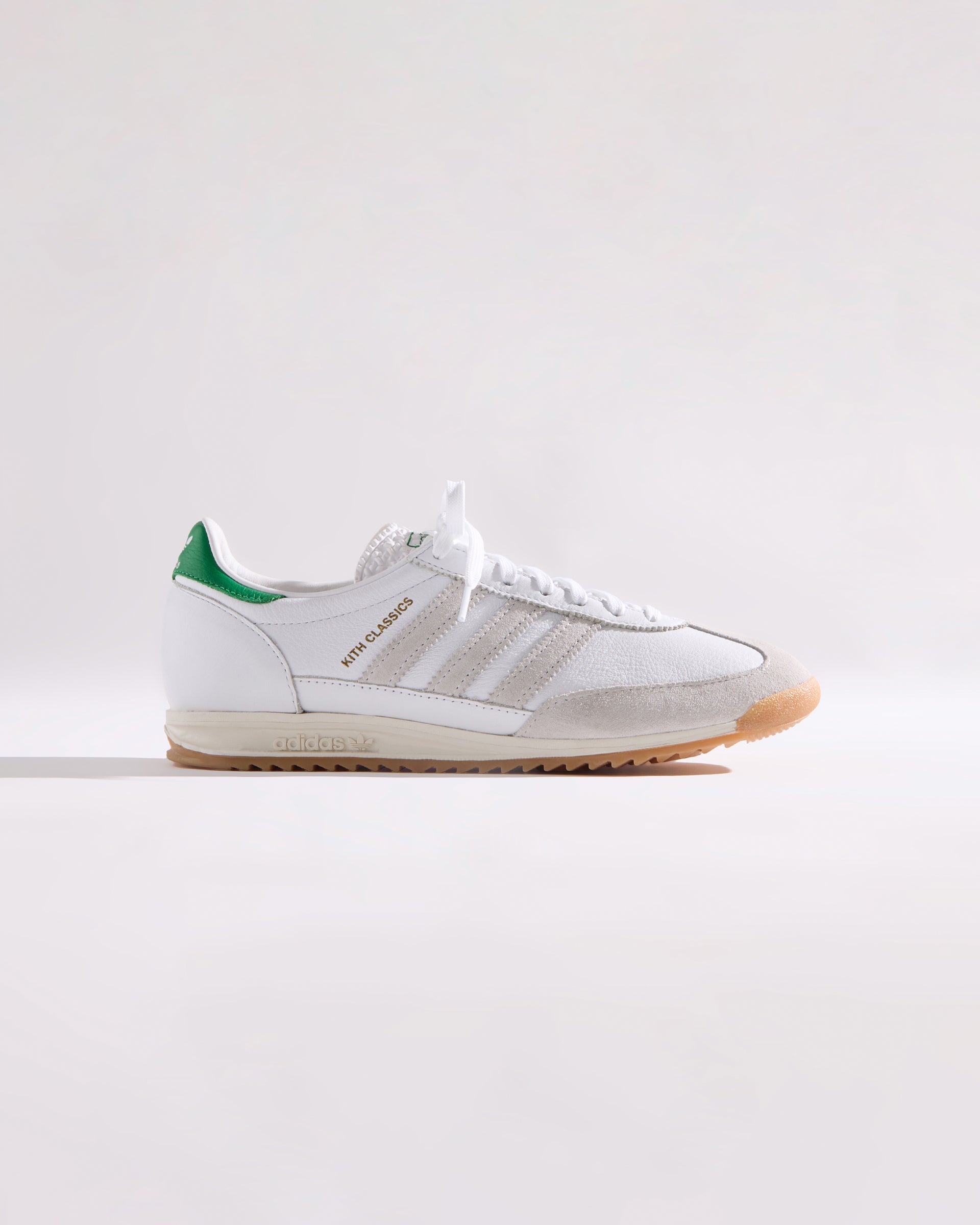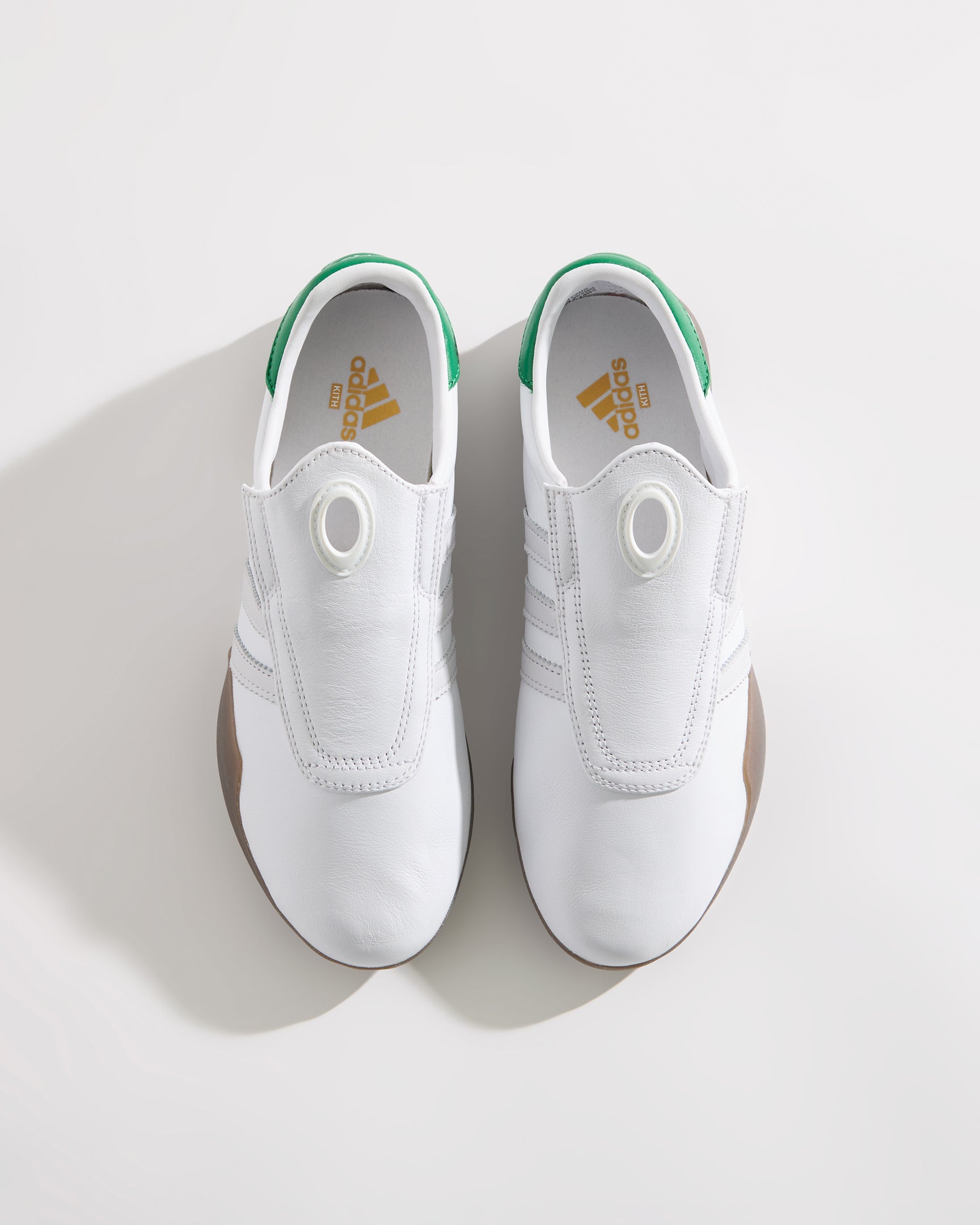 すべてのモデルにプレミアムレザーを使用し、ヒールにはグリーンのKith Classicロゴを配置。一部のモデルには、ゴールドフォイルのKith Classicsブランディングと、スエードのレーザーエッジ加工を施したadidasストライプをあしらいました。