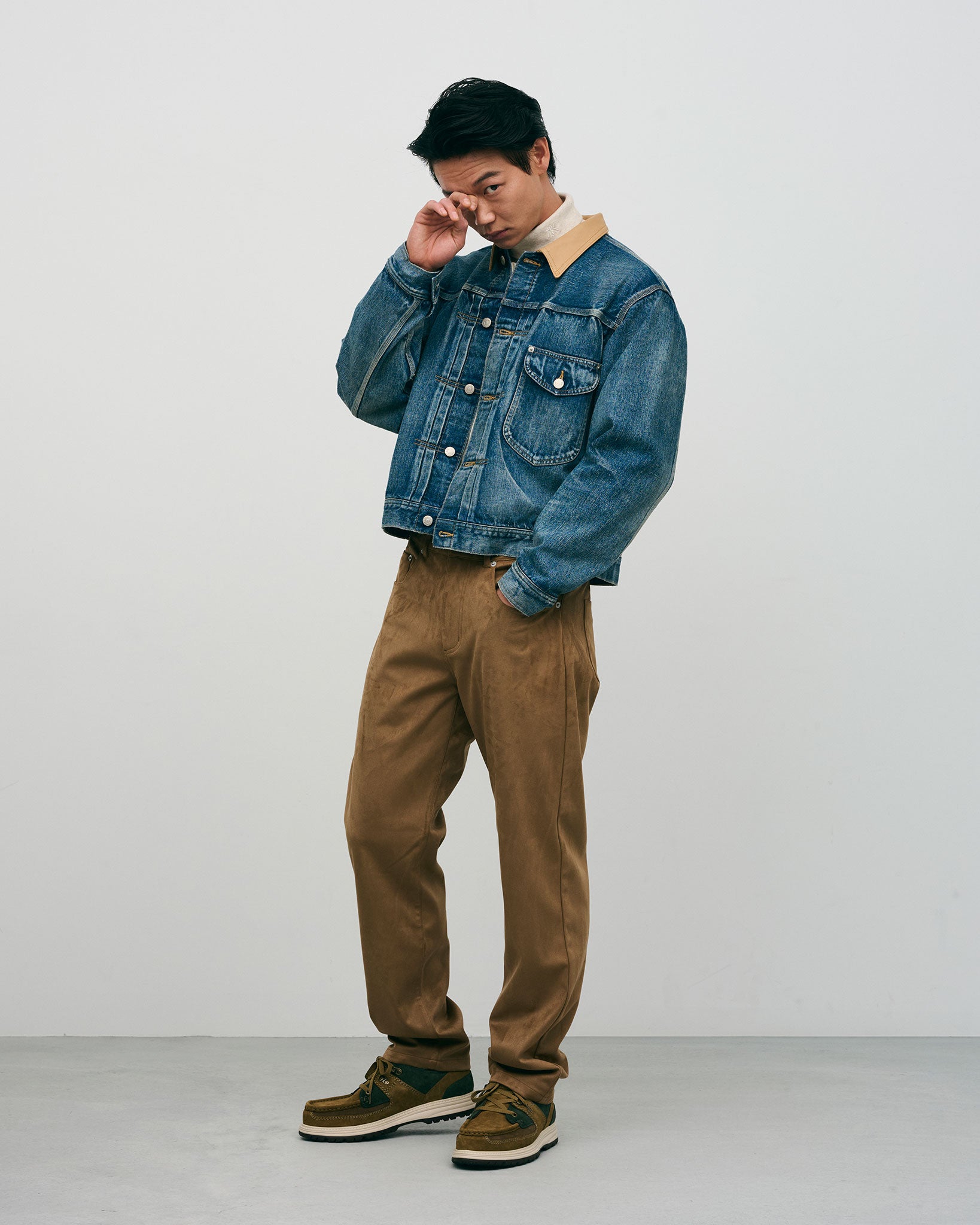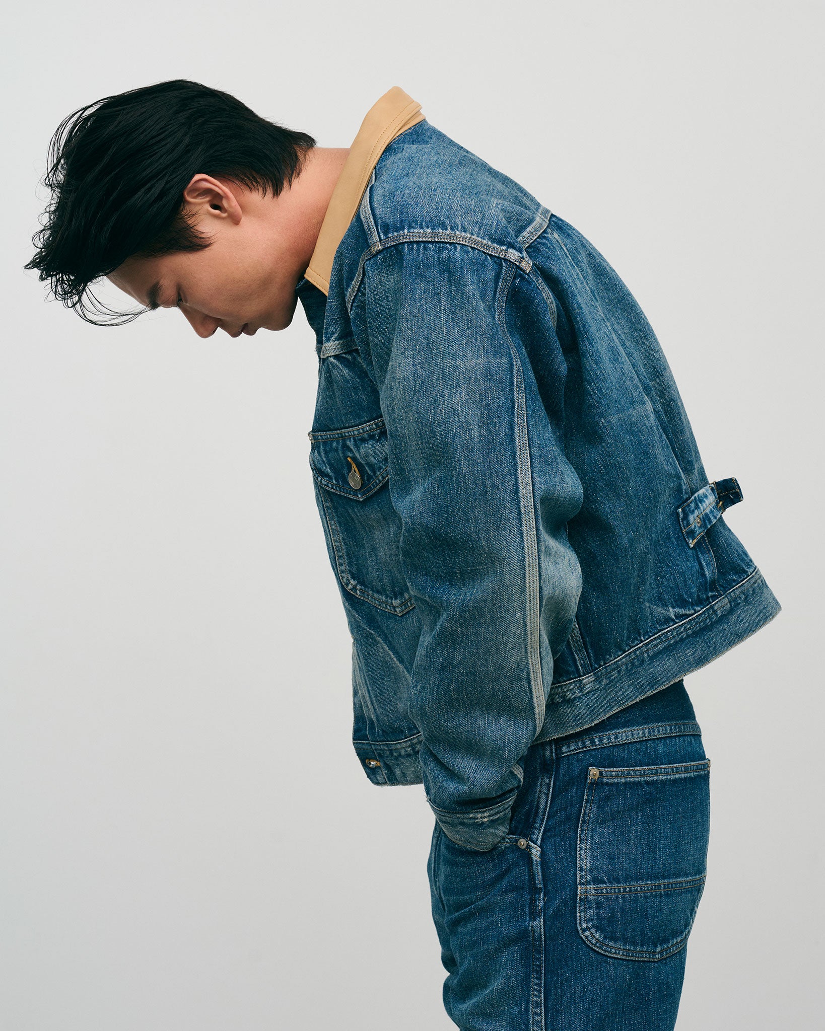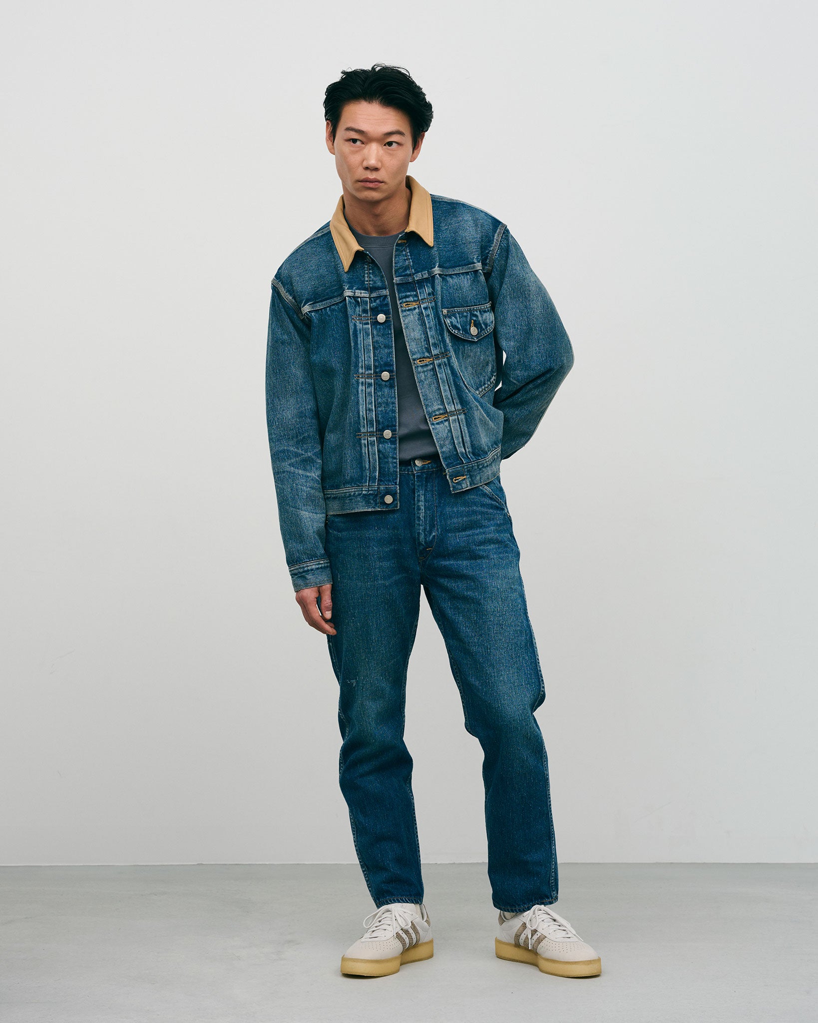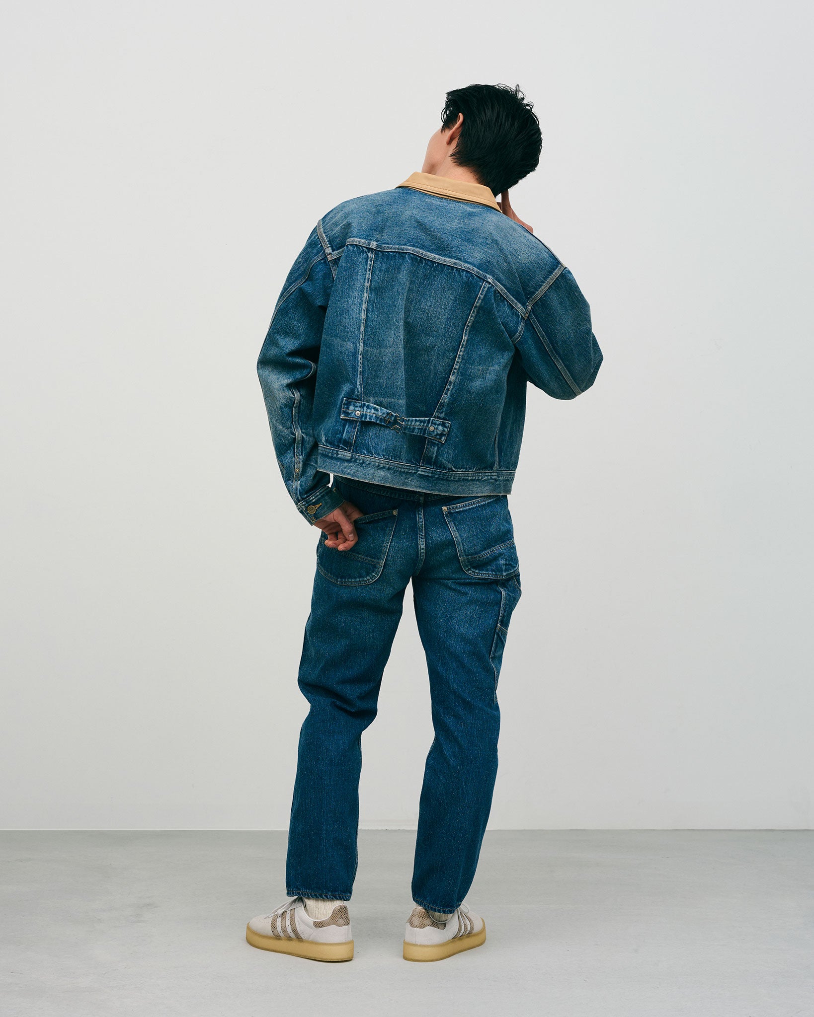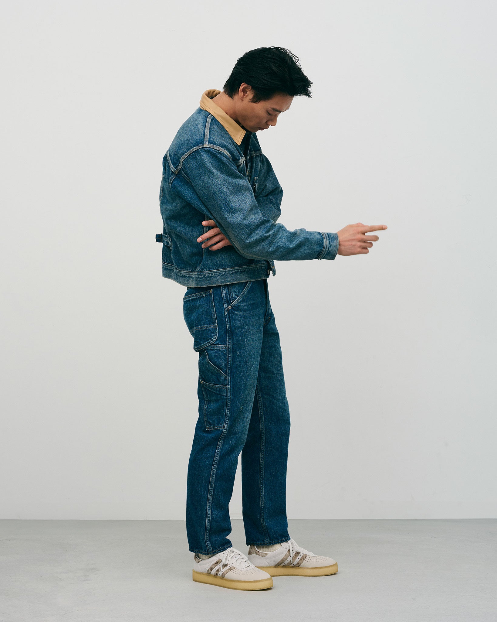 パンツは1970年代のペインターをベースに、太めのヴィンテージから、少しすっきりとしたシルエットにアップデート。きれいな縦落ち感を出しつつ、ジャケットとパンツをセットアップで着用した際の現代的なバランスを追求しました。