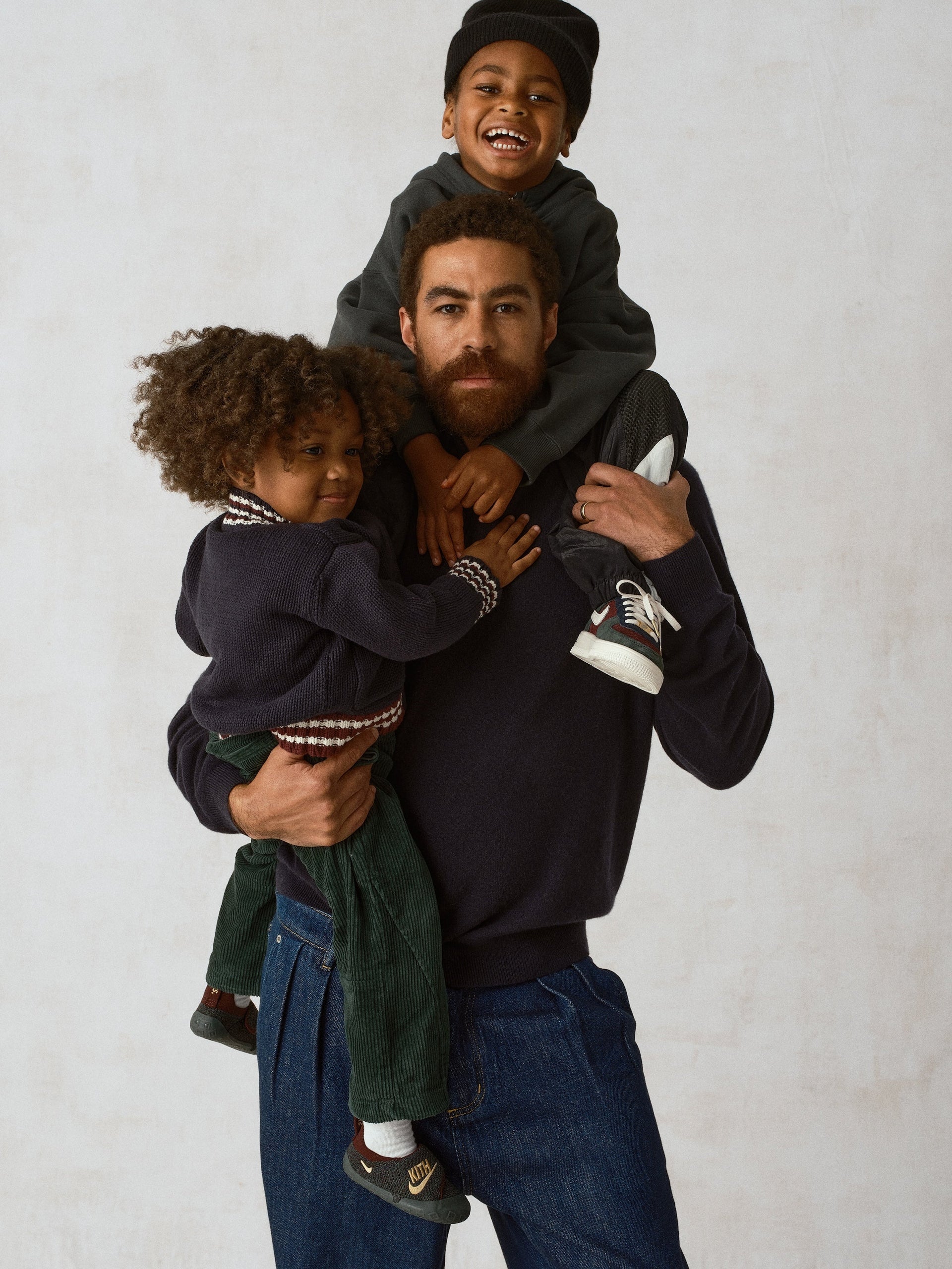 スニーカーコレクションの最後を締めくくるのは、Swoosh One で Crib(ベビー)サイズで登場します。カラーは、Black、Coconut、Maroon の3色展開です。Nike を象徴する Flyknit を採用し、着脱しやすいベルクロストラップ、"Just Us"のヒールプルタブ、そしてアッパーには Kith と Nike Swoosh の刺繍ロゴを配しています。すべてのモデルは、Kith Monogram を全面にあしらった専用ボックス入りで、ホリデーシーズンのギフトにも最適な仕様となっています。