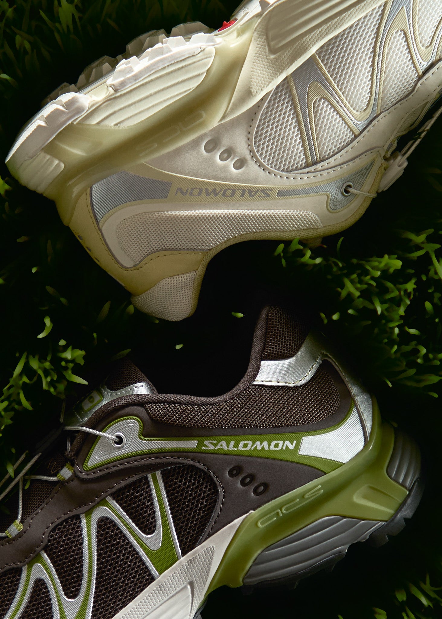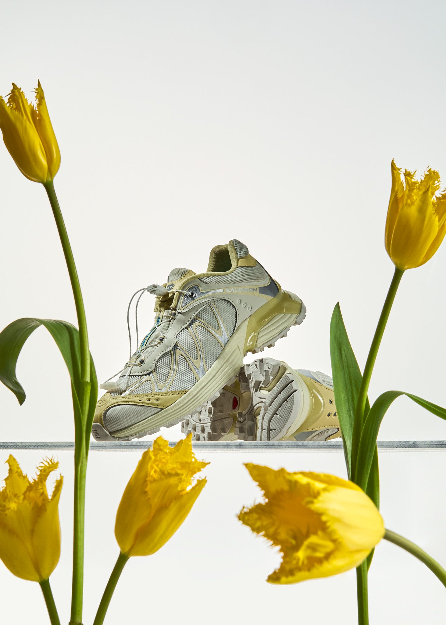SalomonとKithは、Kith Women Spring 2025コレクションの発売に合わせて再びパートナーシップを結び、XT-Whisperの新作を発表。カラーはDelicioso & Dark CitronとVanilla & Transparent Yellowで展開され、本コレクションとのコーディネートに最適のカラーリングで登場します。各シューズには、ヒール、タン、ソックライナーにKithのブランディングが施され、Salomonの象徴的なテクノロジー要素も取り入れられています。