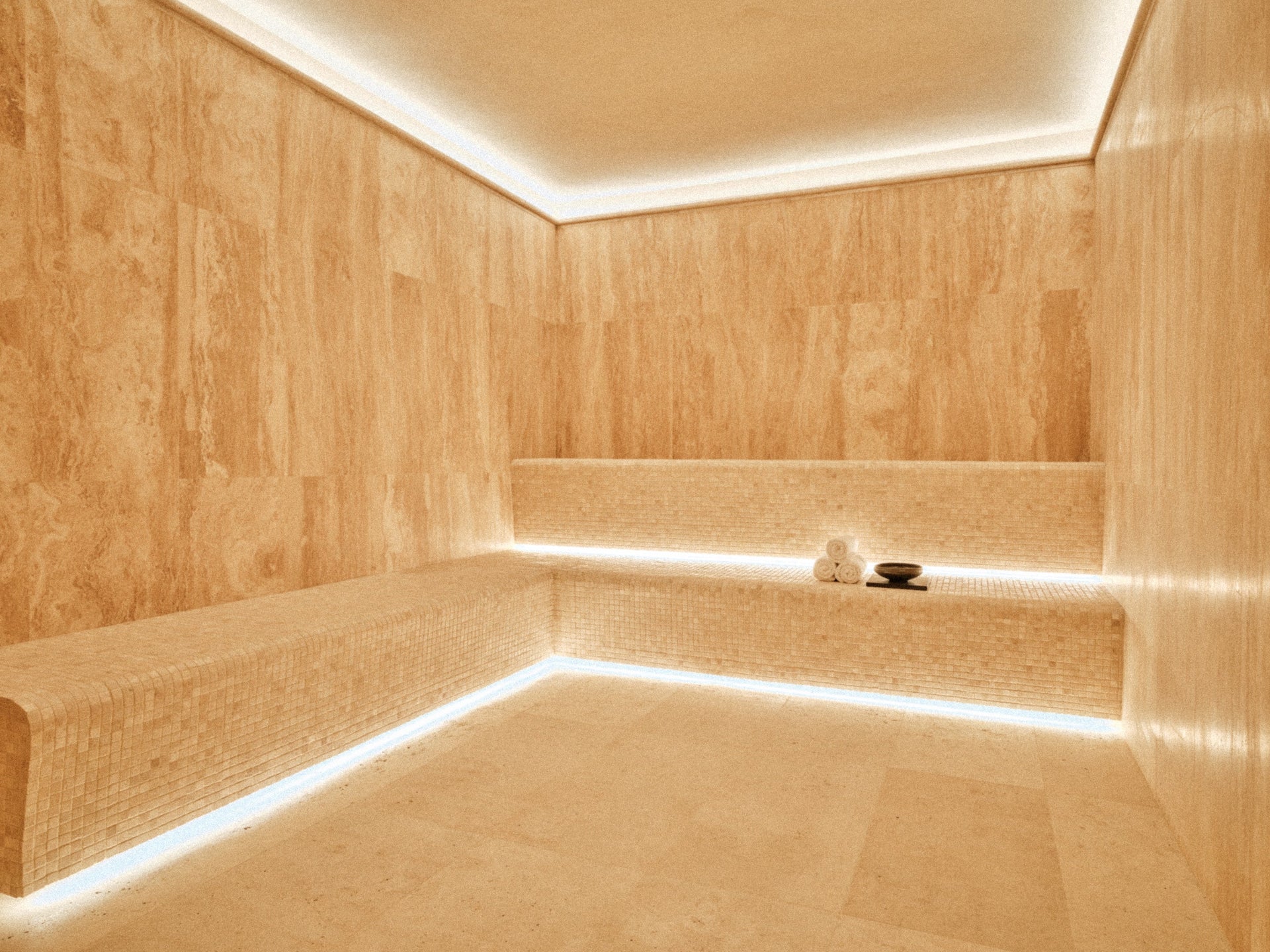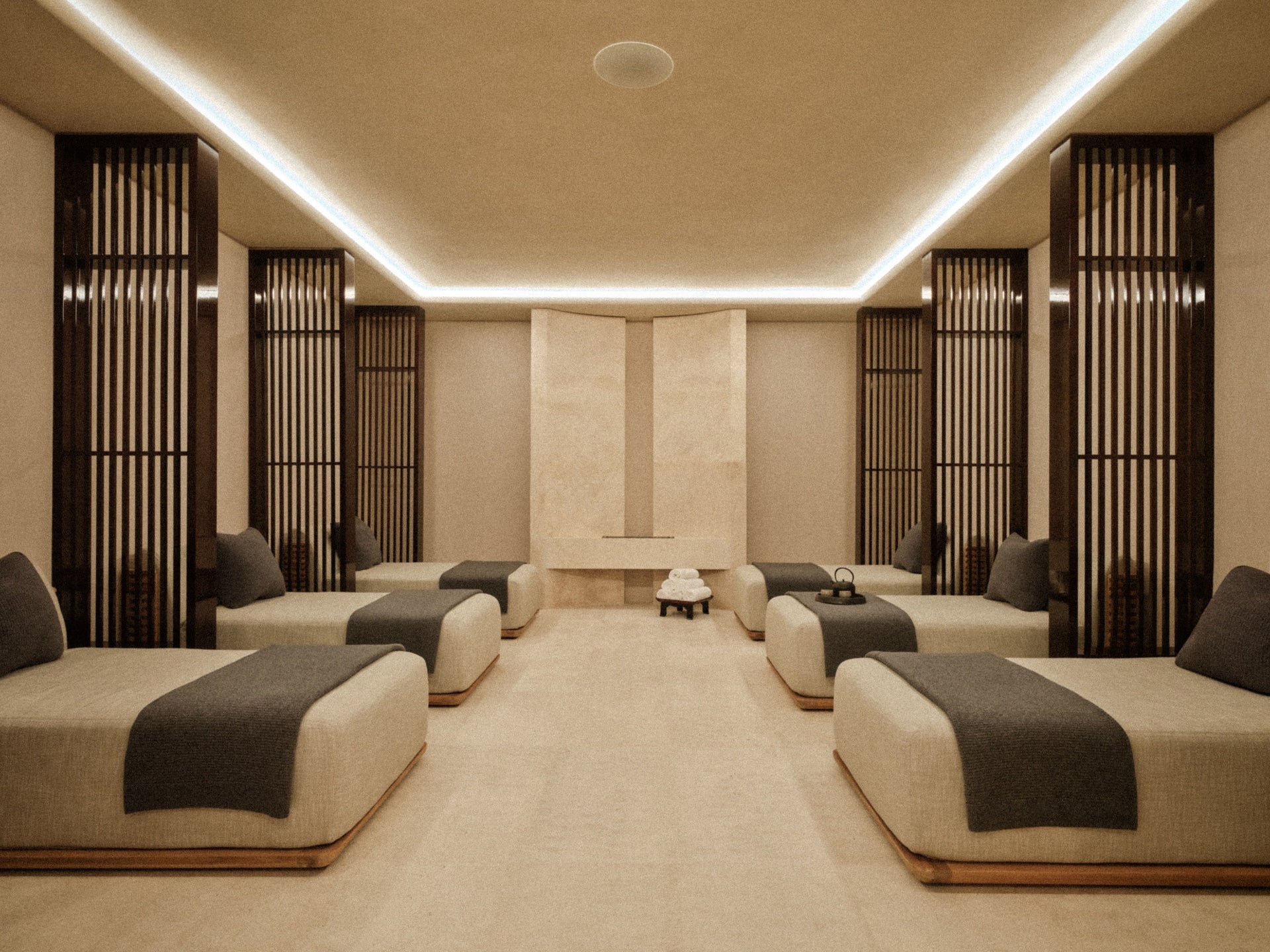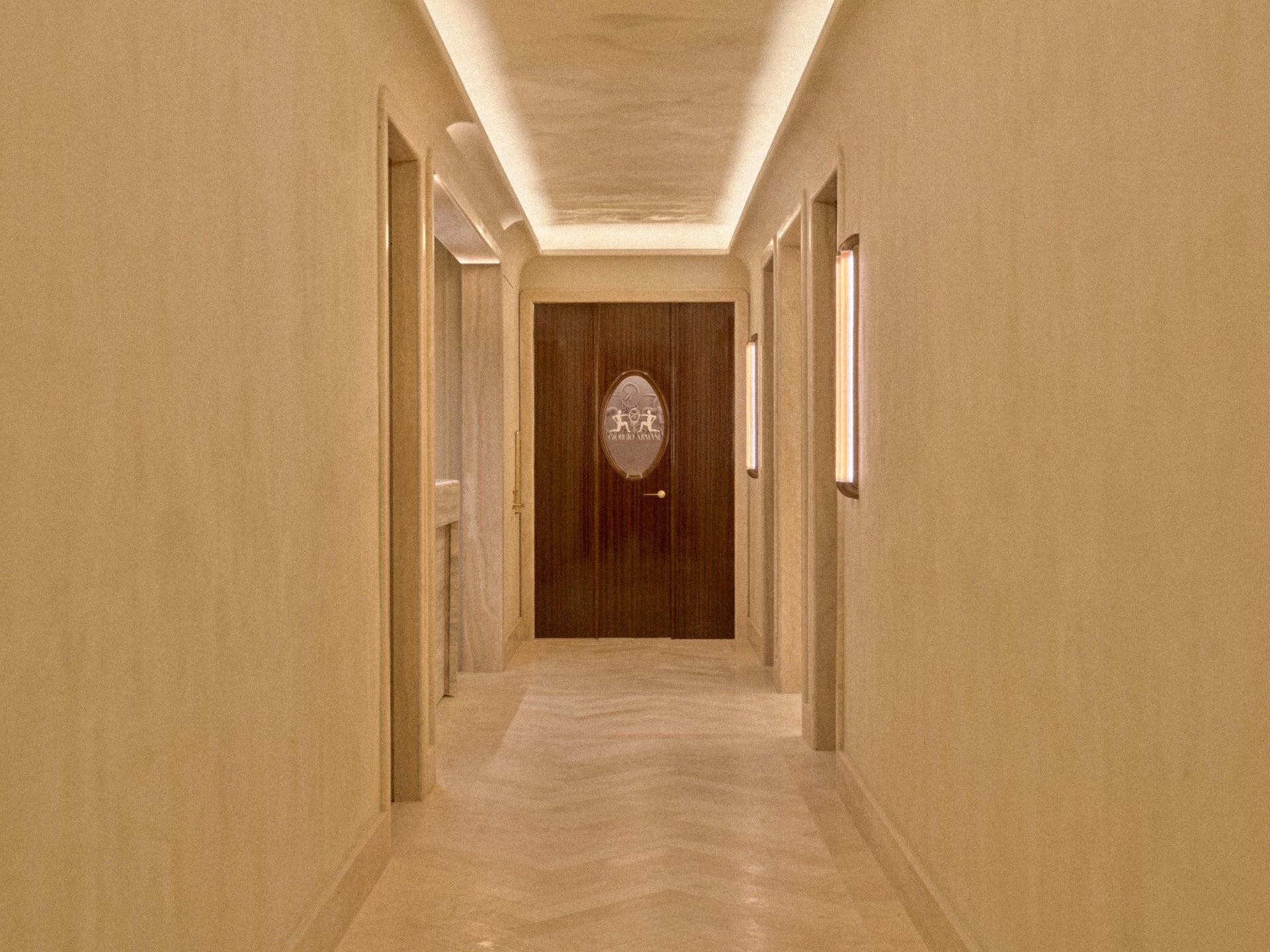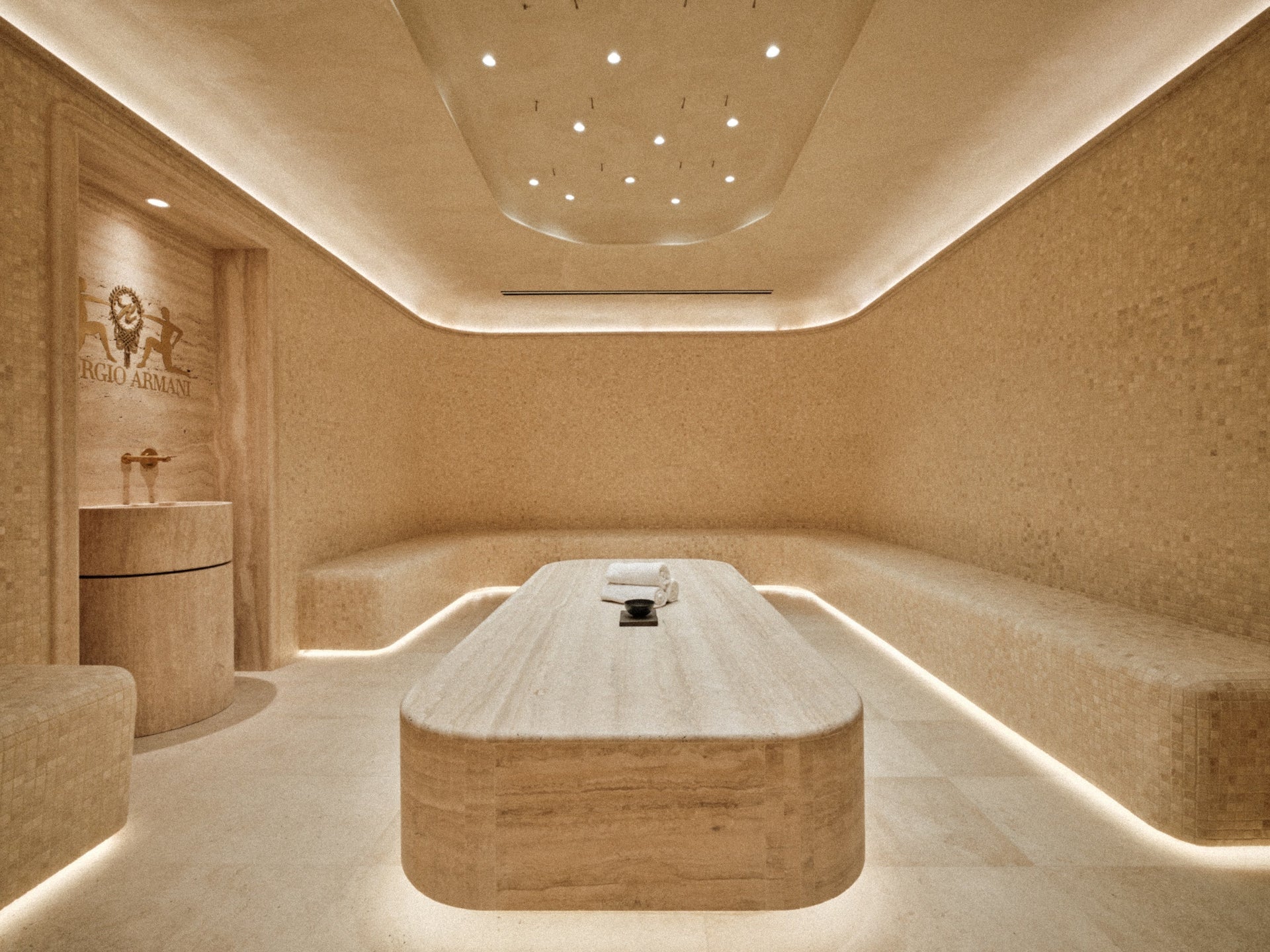 さらに、Giorgio Armani と Kith は、両者の継続的なコラボレーションの一環として、初の試みとなるラグジュアリースパ体験を提供します。世界各地の高級ホテルやスパから着想を得た空間は、トラバーチンの壁と床を用いて静かで落ち着いた雰囲気を演出。最新機器を備えたトリートメントルームでは、タイ式、スウェディッシュ、スポーツマッサージをはじめ、各種フェイシャルトリートメント、IV ドリップ、その他のセラピーを提供します。また、ジャグジー、ハマム、サウナ、スチームルーム、コールドプランジなどの水治療設備も完備し、メンバーにリラクゼーションの場を提供します。