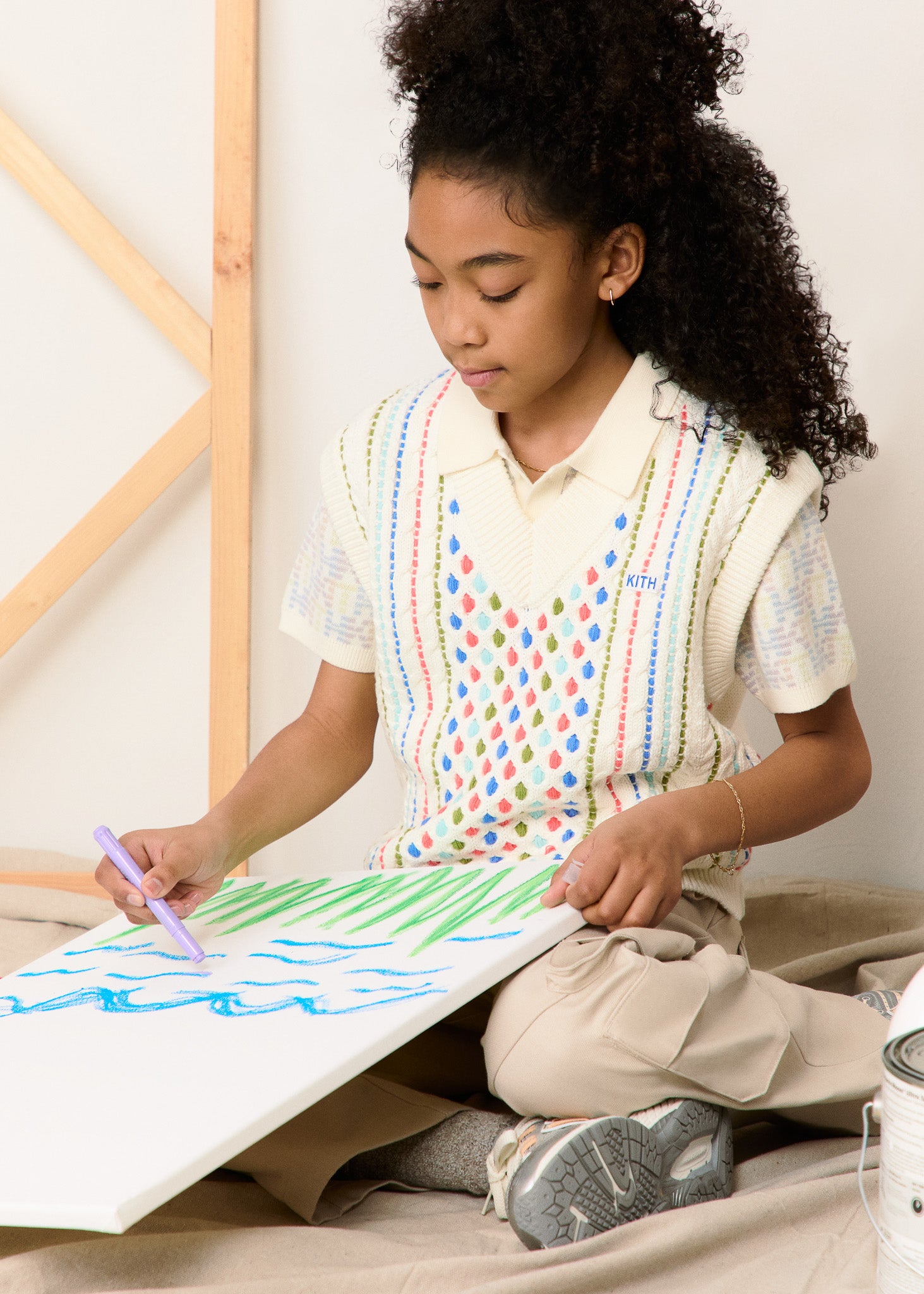 Kith Kids presents Spring 2025: a collection of transitional silhouettes featuring original artwork and springtime hues, complete with coordinating accessories.