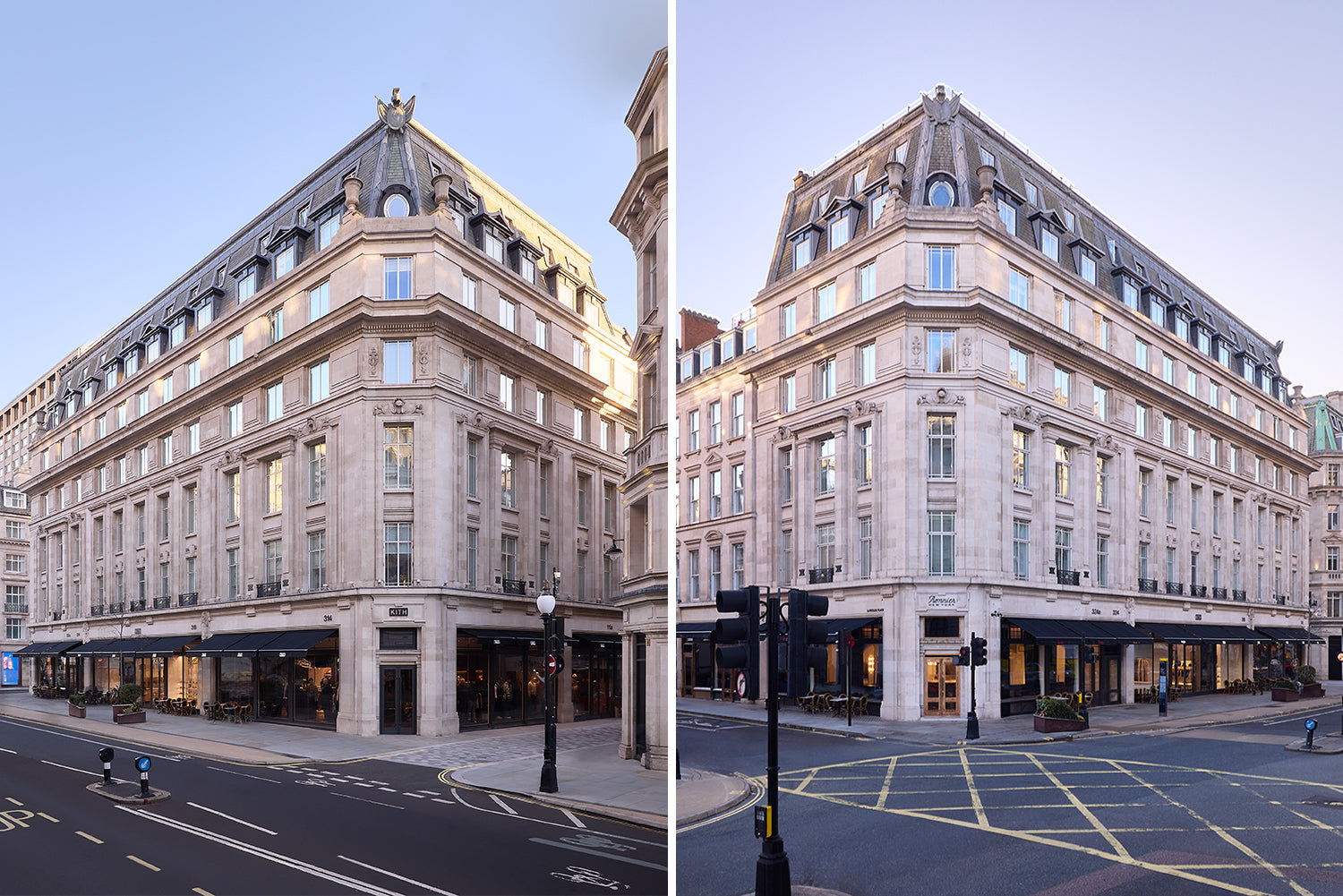 Kith has combined what was formerly 318 and 324 Regent Street into a significant, substantial hospitality destination, boasting two floors standing where Regent and Little Portland Streets meet. There are two designated entrances for the Kith retail space and one separate entrance for Ronnie’s, the entire building’s facade being part of the original John Nash-designed Regent Street, later replaced with Neo-Baroque style buildings as a part of Regent Street’s rebuilding during the 1920s. The main entrance is defined by the original interior vestibule for the building, complete with original curved glazing and windowpane glass that's over a century old. Maintaining its historical integrity was key throughout the process of Kith’s venture into London, and truly captures the upscale essence of the storefront from the inside out. Ronnie Fieg collaborated with architect Ben Porto of Porto Architecture to execute Fieg’s design vision to bring this flagship to life.