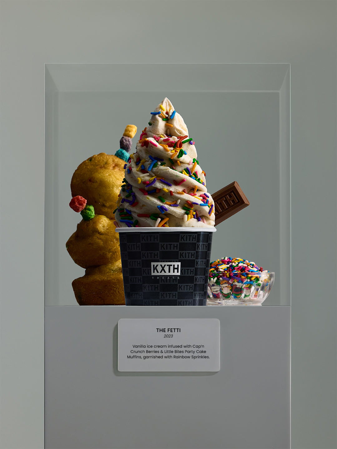 2015年、Ronnie Fieg が子どもの頃から抱いていた「ニューヨーク初のシリアルバーをオープンする」という夢から始まった Kith Treats は、今や Kith を象徴する存在へと進化しました。現在では、Kith のフラッグシップ各店舗に Kith Treats アイスクリームバーが併設され、これまでに多彩な限定メニューやアパレルコレクションを展開してきました。そして何よりも、家族や友人たちとともに生み出してきたSignature Specials の数々が、ブランドのアイデンティティを築いてきました。
