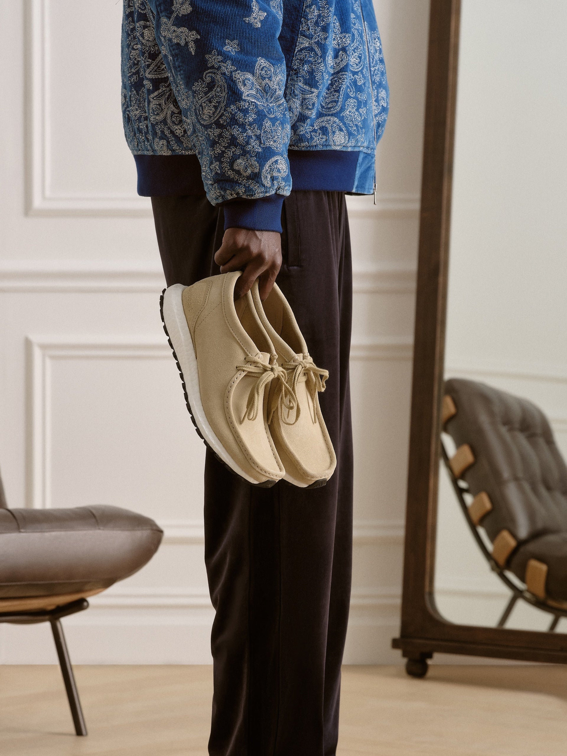 For this season’s footwear assortment, Kith reprises its partnership with Converse to reintroduce the Chuck Taylor All Star 1970 Ox silhouette, updated in all-over Kith Classic Logo embossed suede, and Ronnie Fieg introduces the latest 8th St collection, comprising the new Trek King style and the return of the Laddow. The Trek King takes the Desert Trek upper and combines it with a leather welted crepe midsole and traction Vibram outsole, designed in Sand suede and Coffee leather colorways. This season’s Laddow is designed to have a shearling lining, cow leather upper, and Fieg branding on the tongue and footbed.
