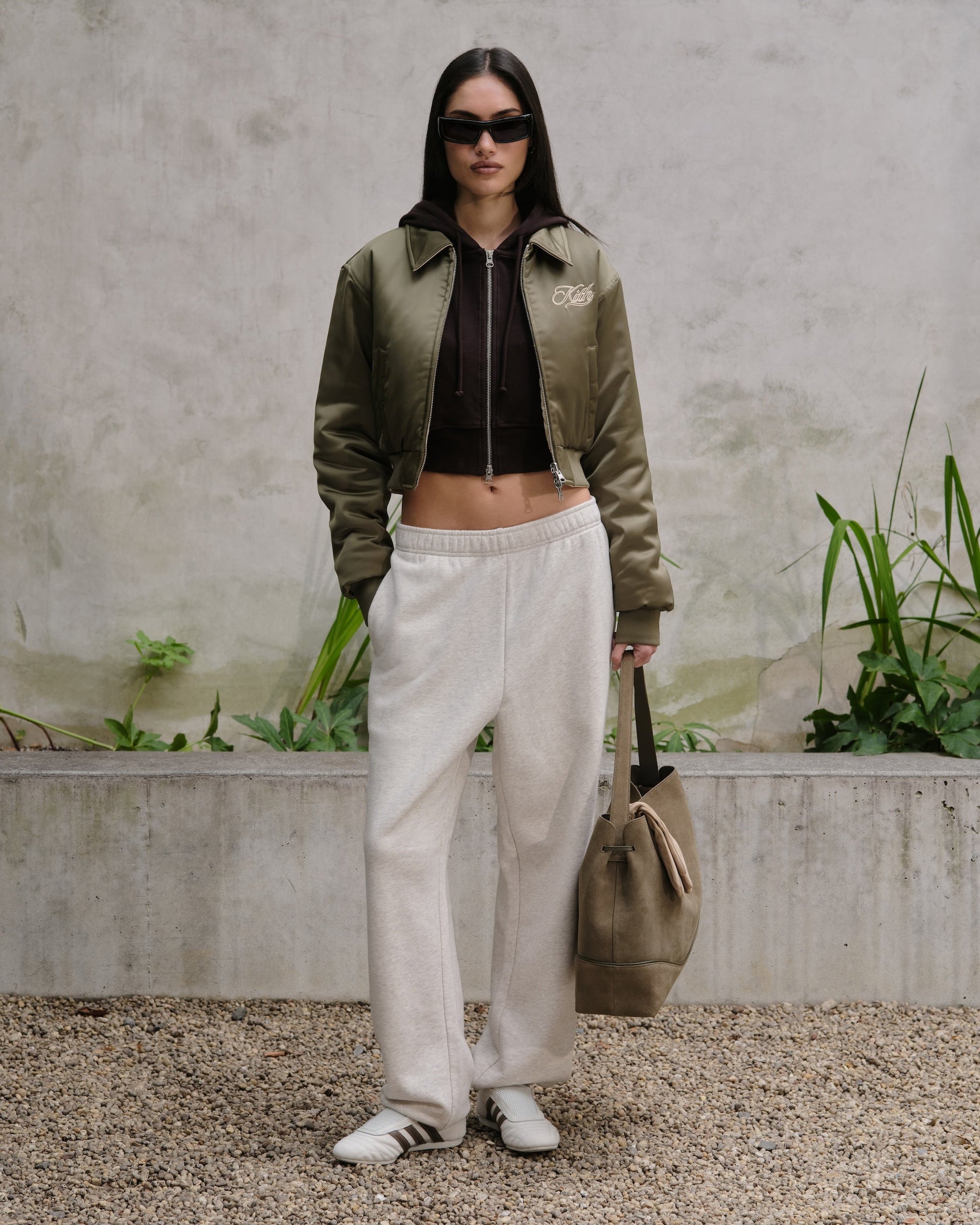 Also returning for Fall 2025 are staple styles from Kith Women Classics; the Reversible Landry IV Cropped Satin Bomber, the Mulberry II Tee in a variety of hues, and the Wyler Full Zip, along with a capsule of racing-inspired styles like the Ridley Motocross Tech Long Sleeve, the Hunter III Sport Logo Quarter Zip & matching Rayne II Sport Logo Sweatshorts. This collection is completed by silhouettes ideal for set-dressing, such as the Opal Dolman Mock Neck Short Sleeve & the Ava II Sweatpant. Each piece from Kith Women Classics features subtle Kith branding, and is made from textiles engineered for a soft hand-feel like marled cotton knits and brushed fleece.