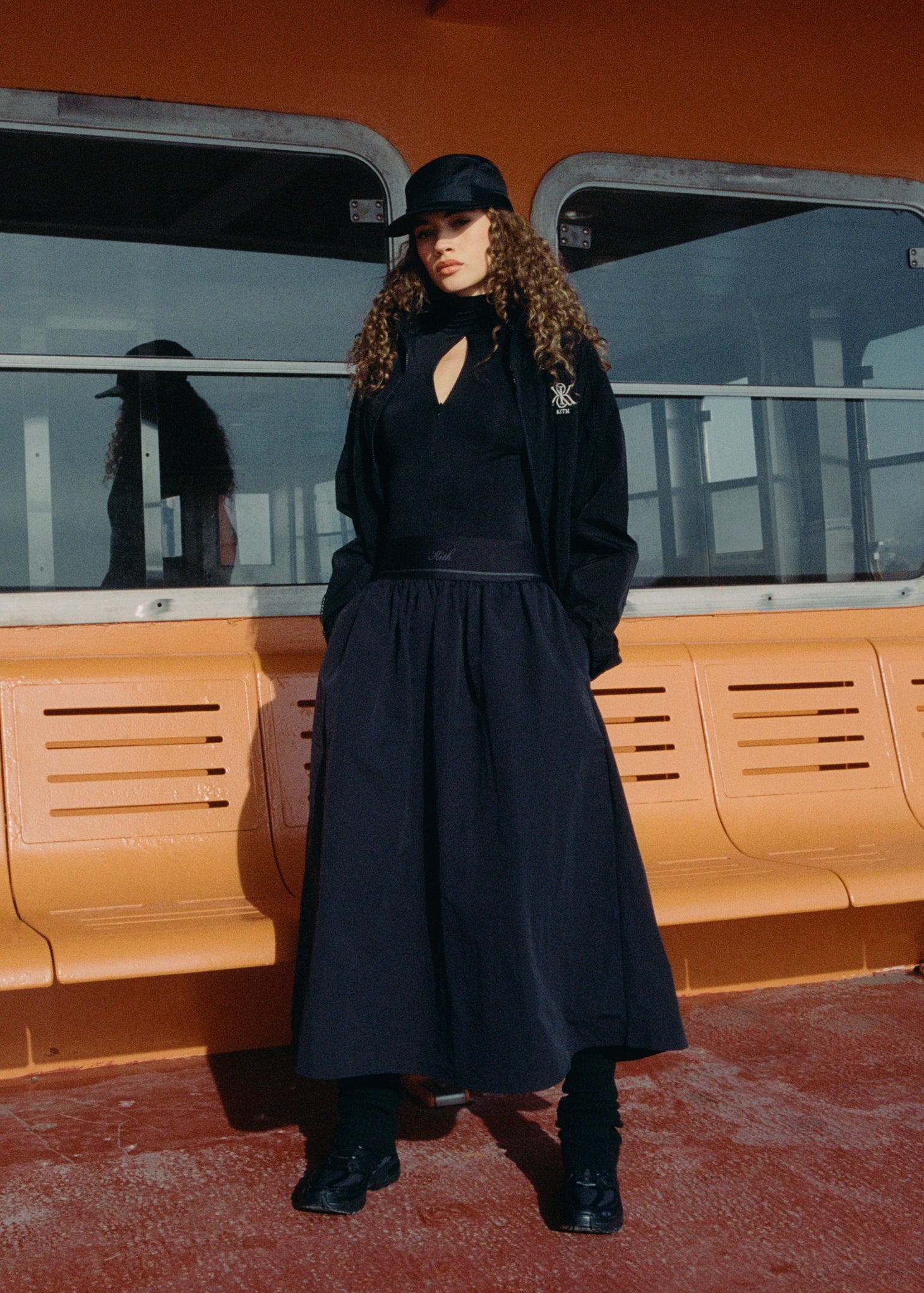 Kith Women Spring 2025コレクションでは、パッチワーク、プリーツ、テーラリングといったディテールを取り入れ、コートやジャケット、トップス、ドレス、ボトムスに落とし込んだラインナップを展開。フリースやコットンジャージーを使用した定番のルームウェアを含むノベルティカプセルが特徴の本コレクションでは、セットアップとしても、単品でも自在にスタイリングを楽しめるアイテムが揃います。また、プリントナイロン、ループバックトリコット、オットーメッシュを採用したテクニカルなシルエットも展開。注目アイテムとして、暖かくなる季節に最適なNadine Nylon Maxi Skirtや、Kithのカスタムアートワークとグラデーション加工が施されたGradient Ridley Tech Long Sleeve、春のレイヤリングにぴったりなNova Ripstop Windbreakerが登場します。さらに、シーンを選ばずにスタイリング可能なLilith Sequin Shell Tankや、Ella Patchwork Fitted Shirt、そしてセットアップとしてスタイリング可能なScarlett Zip Shell TankとPetra Suiting Track Trouser等のアイテムもラインナップします。