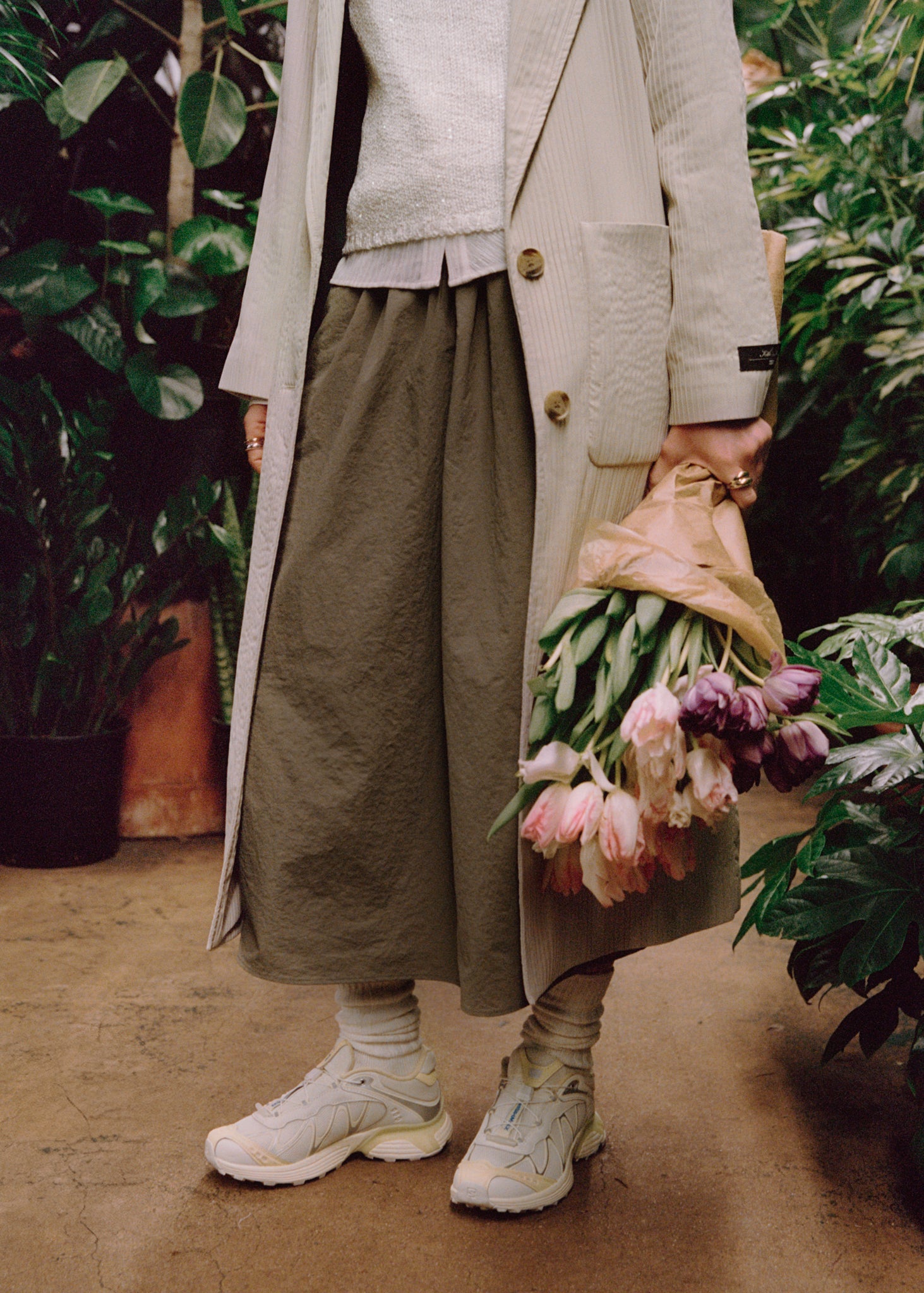 さらに、SalomonとKithは、Kith Women Spring 2025コレクションの発売に合わせて再びパートナーシップを結び、XT-Whisperシルエットを2色で発表します。カラーはDeliciosoとDark Citron、そしてVanillaとTransparent Yellowで展開され、本コレクションとのコーディネートに最適です。各シューズには、ヒール、タン、ソックライナーにKithのロゴが施され、Salomonの象徴的なテクノロジー要素も取り入れられています。