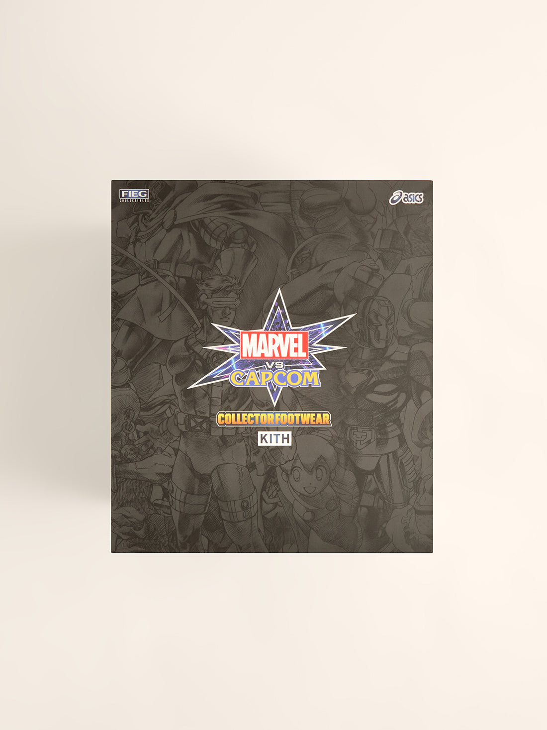 The first double-box of two styles sold only as a set is inspired by Marvel’s Captain America and Capcom’s Guile in the GEL-KAYANO® 12.1 silhouette, featuring colors inspired by each character, complete with an open mesh upper, synthetic overlays, and Kith branding on the tongue and footbed. The Guile silhouette has an Olive hue on the upper and camo-printed textile lining, contrasting Captain America’s deep Navy, Red, and Silver. Each includes classic GEL-KAYANO® 12.1 tooling, such as a GEL-NIMBUS® 17 midsole, dual GEL® technology inserts, and a FLUIDRIDE™ cushioning structure. Each double box will receive a special custom Marvel vs. Capcom | Kith Comic Book one-shot as a gift with purchase, including different variant covers that range in rarity and with PSA Graded potential. The one-shot comic is written by Paul Allor and drawn by Ron Lim, with the main cover drawn by Michael Shelfer and additional “Match-Up” variant covers by Todd Nauck. from each franchise.