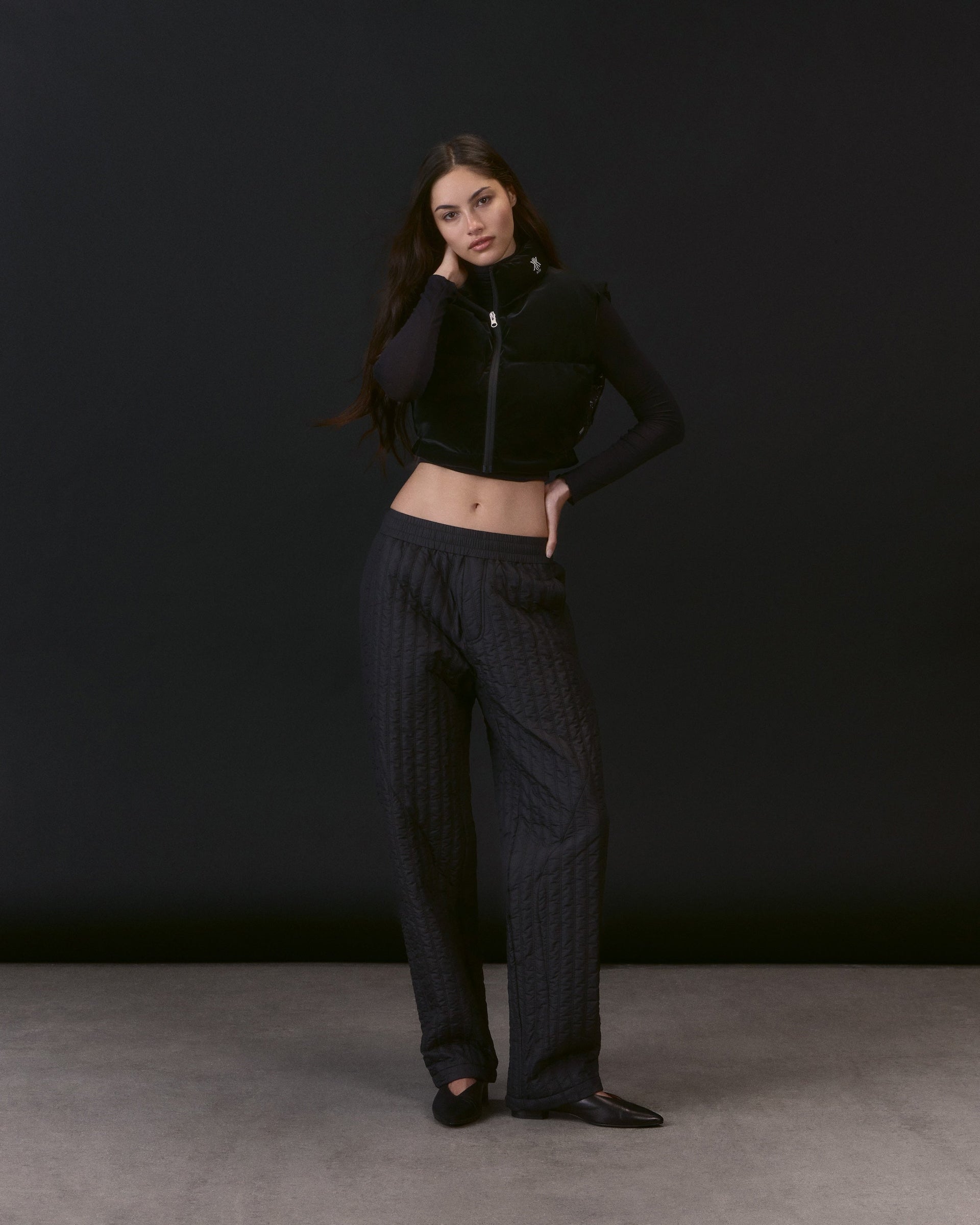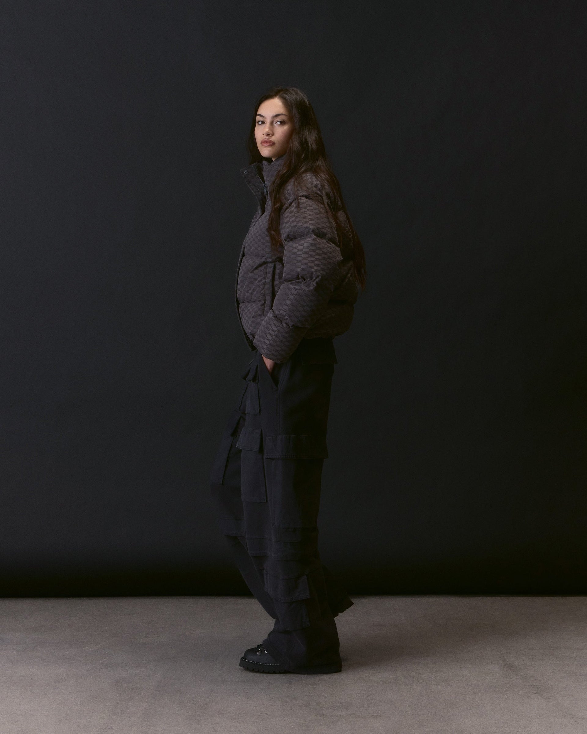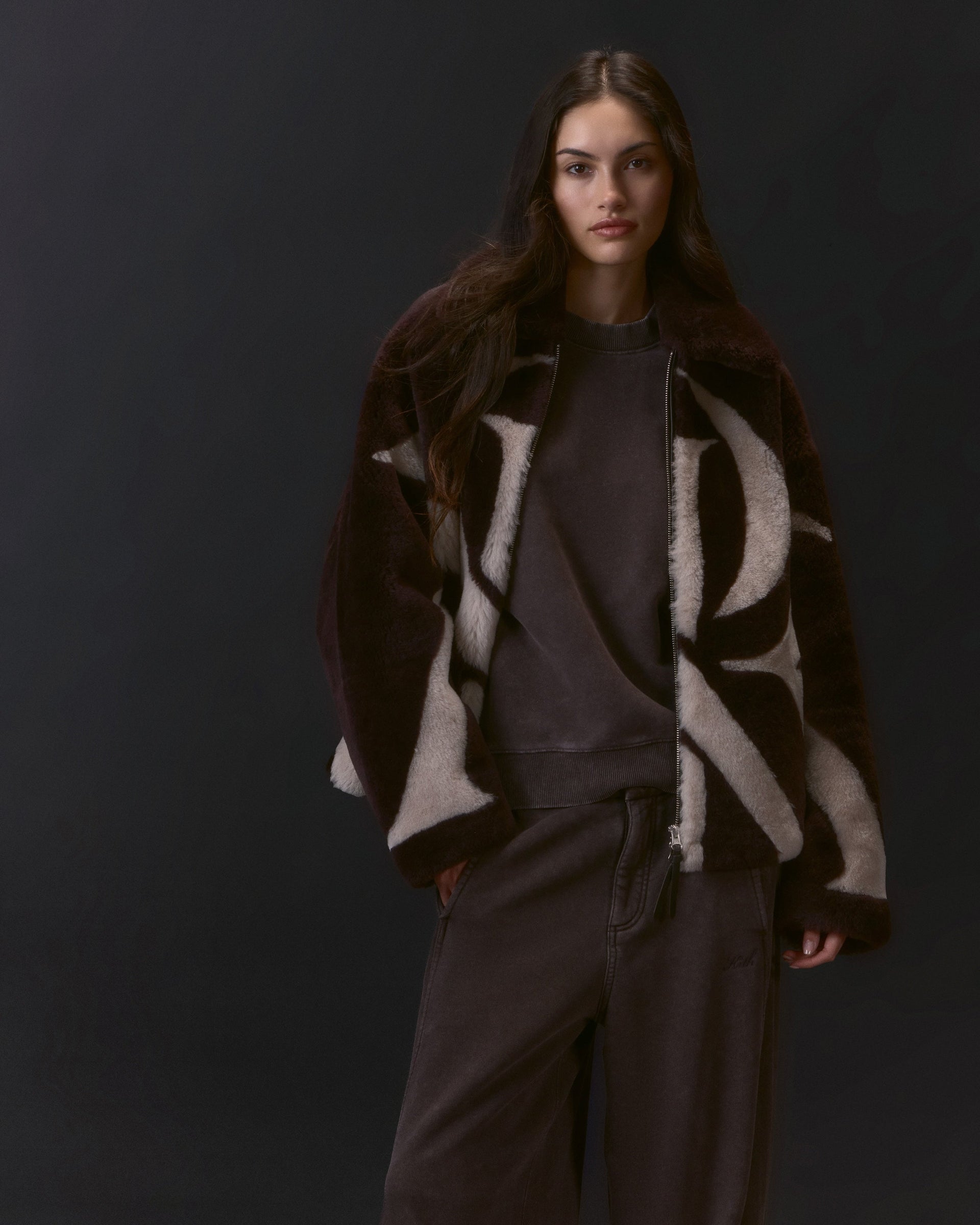 From reversible silhouettes like the Rory II Coat and convertible styles that zip-off from jacket to vest like the Wynne Puffer, to tailored wardrobe staples such as the Maeva Melton Stripe Scarf Coat, this assortment features a range of standout styles with all-over Kith branding and mix of materials from premium wool to faux fur and sherpa. Ideal for day-to-night dressing, statement outerwear selects such as the Senna Faux Fur Reversible Bomber and the premium shearling Waylon II Monogram Jacket make for effortless holiday occasionwear. More understated silhouettes from the Winter Classics assortment include the Brisa Patina Bomber made of textured velvet, the Corey Hooded Nylon Puffer, a favorite from the Classics assortment in seasons past, and the Shae Cropped Denim Puffer in a range of hues.