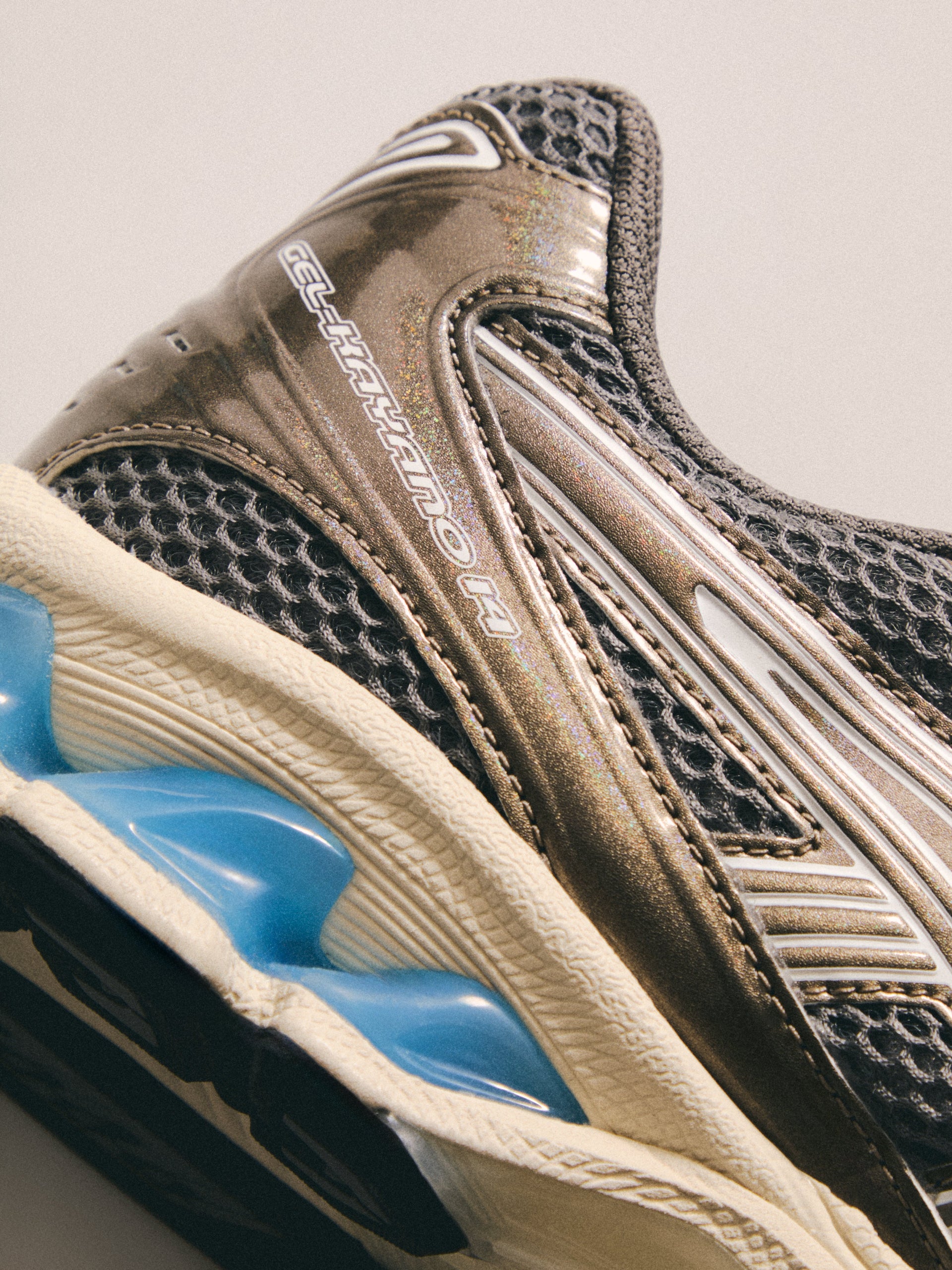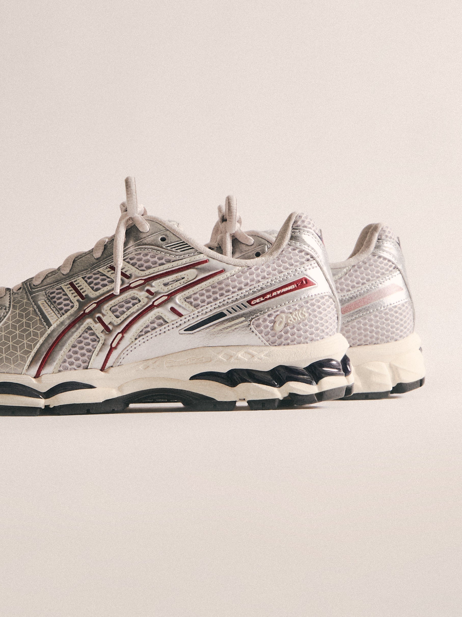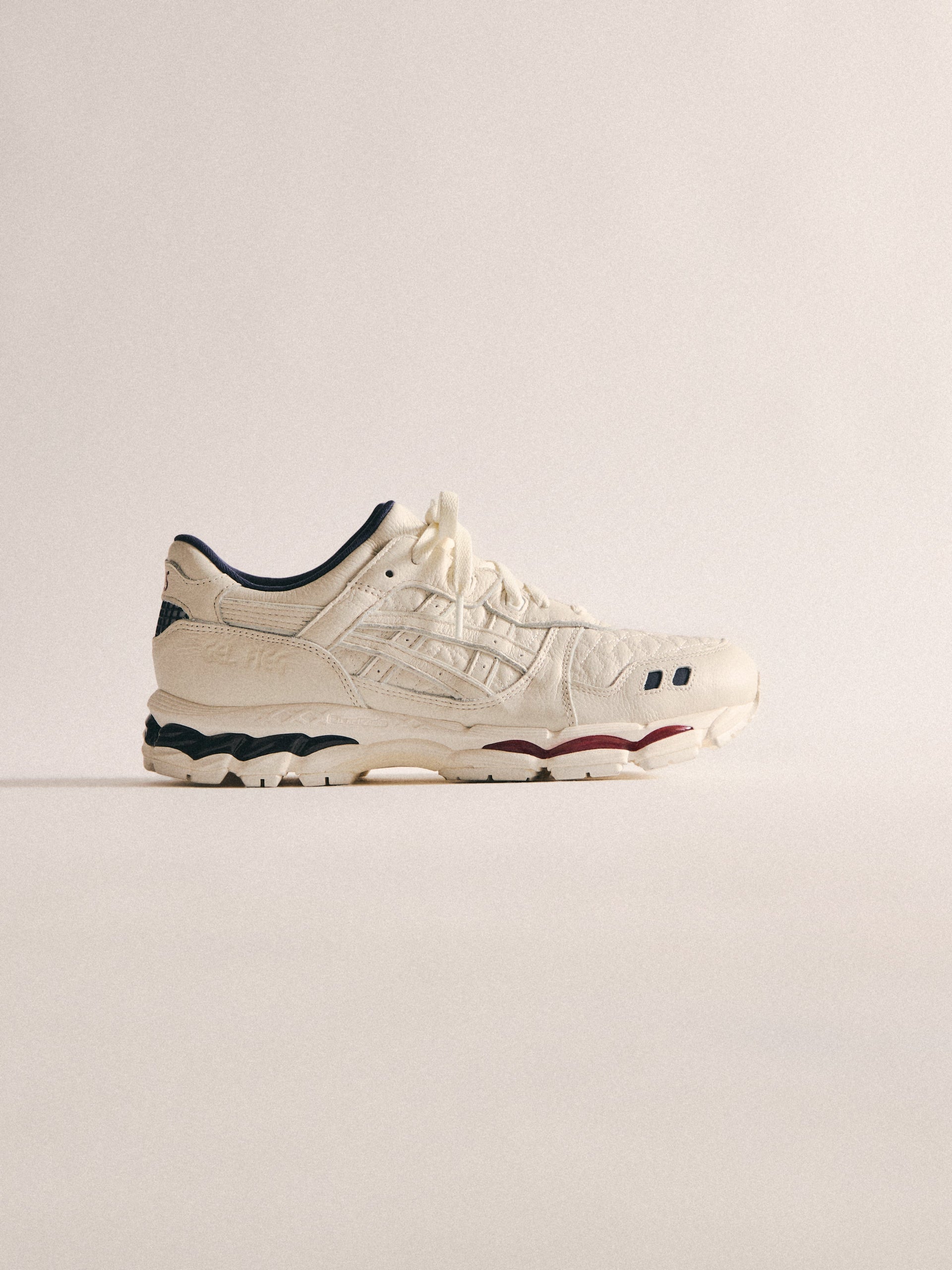 最新の GEL-KAYANO 12.1 は、過去のモデルをベースに Wind Chime と Pure Silver の新カラーでアップデート。アメリカへのオマージュとしてデザインされ、オープンメッシュのアッパー、シンセティックオーバーレイ、タンとフットベッドには Kith のブランディングを配しています。90年代に登場したアーカイブモデル GEL-MAI を再解釈した Ronnie Fieg’s 0.1 バージョンは、オリジナルと同様の fuzeGEL™ テクノロジー を採用しつつ、ライフスタイル仕様にアップデート。メッシュのアンダーレイとシンセティックレザーのオーバーレイで構成され、タンに Fieg、ヒールに Kith のロゴ、さらにコラボレーションフットベッドを備えています。カラーは “Japan” をテーマにデザインされています。GEL-LYTE 3.1 は、GEL-LYTE III のアイコニックなアッパーと GEL-NIMBUS 17 のソールを融合したモデル。デュアルデンシティ構造とジェルパディングを採用し、レザーアッパーにキルティングのアンダーレイ、Fieg ロゴ入りのスプリットタン、そして1900年パリ万博を讃えるデボスアートワークをサイドにあしらっています。そしてコレクションを締めくくるのは、“Chicago” GEL-KAYANO 14®。グラナイトを基調にグレーとホワイトのアクセントを効かせ、イリディセント加工を施したシンセティックレザーのオーバーレイ、タンに Kith、ヒールに Fieg のロゴ、さらに特製パッケージが付属します。