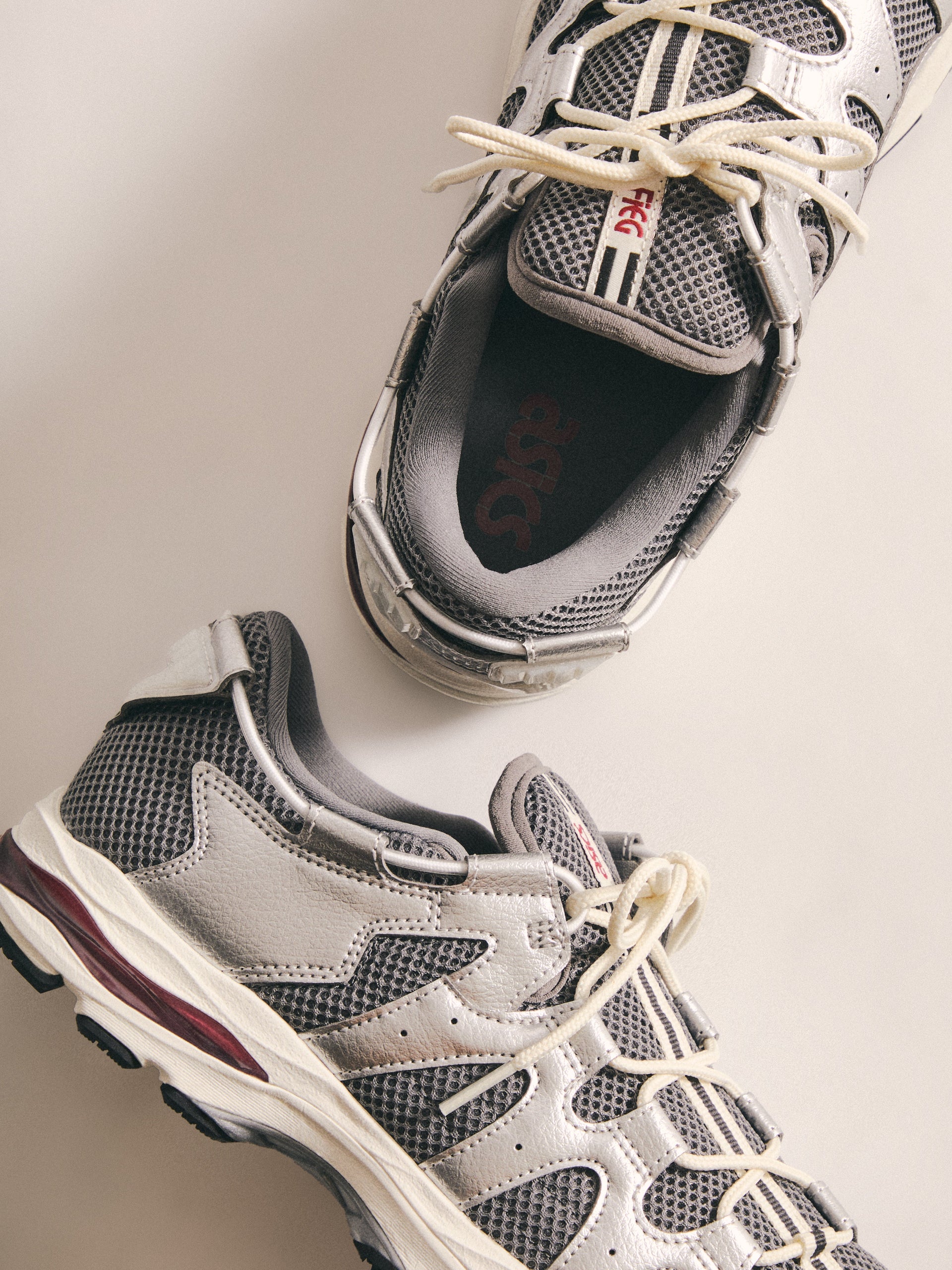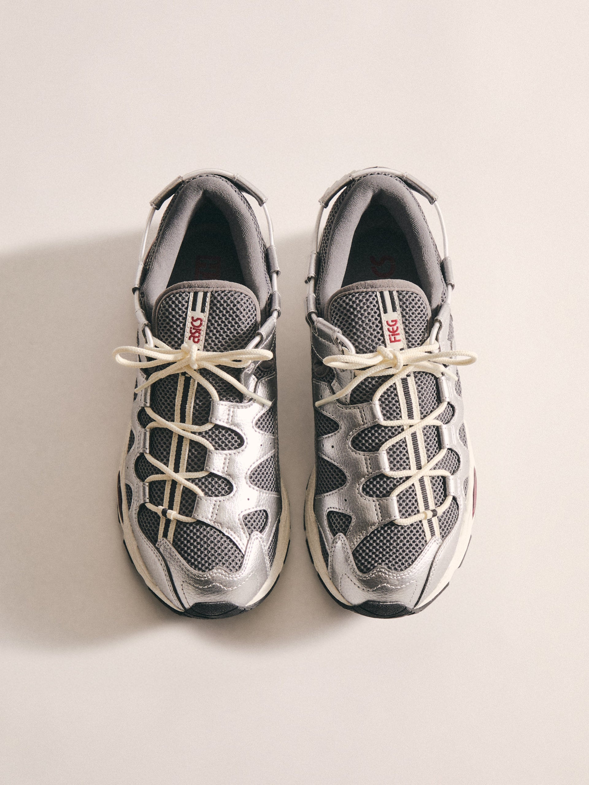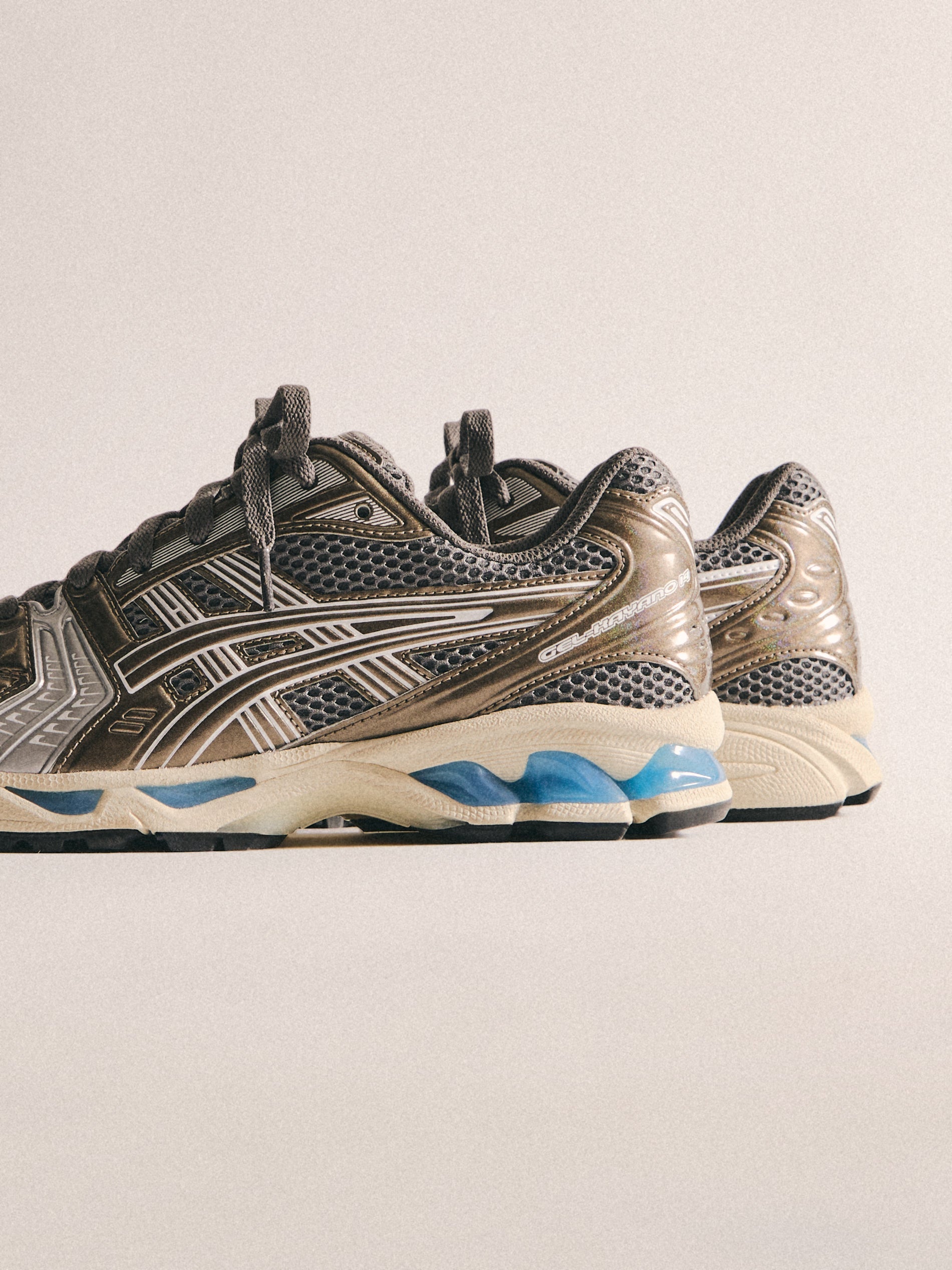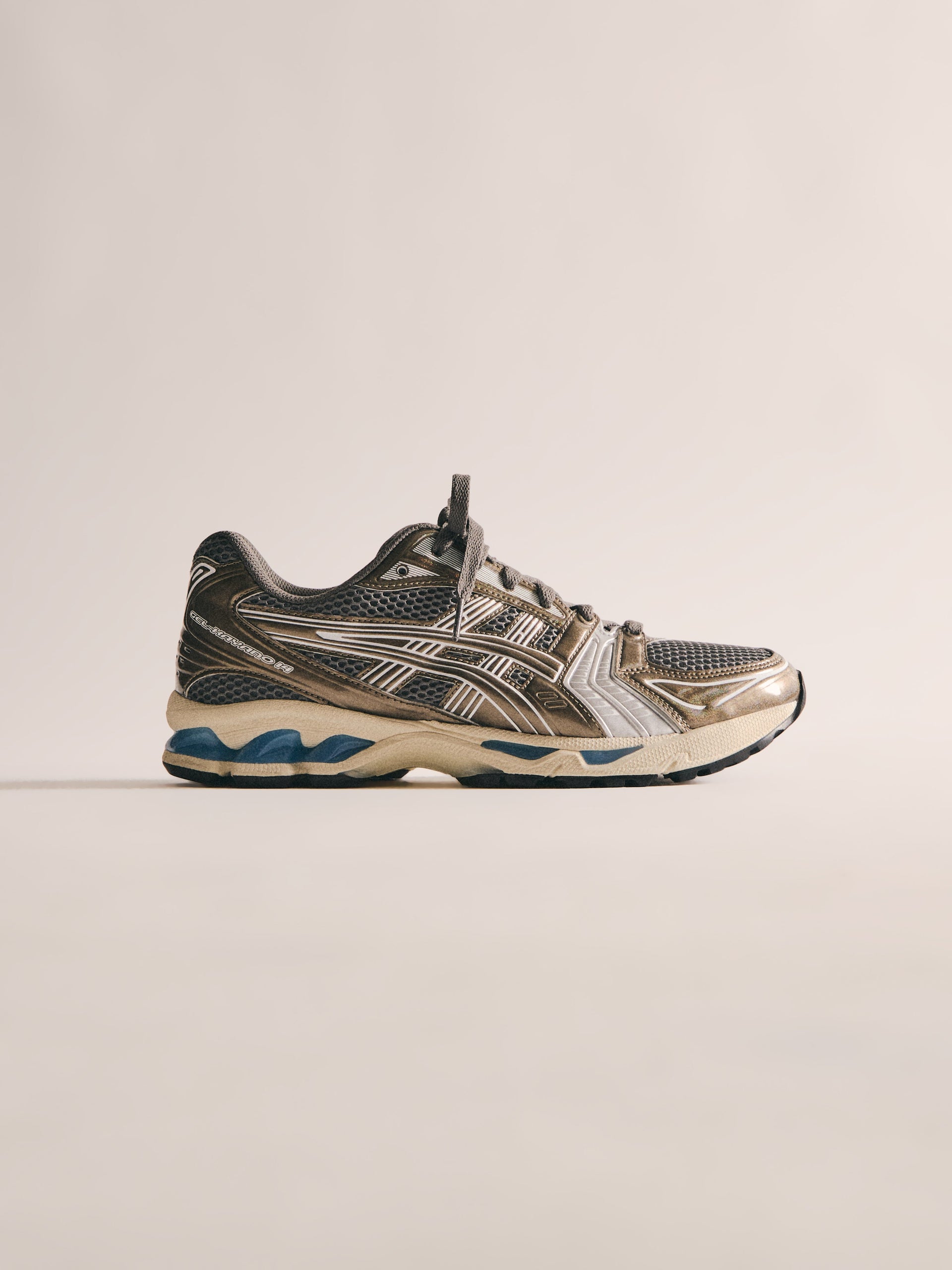 最新の GEL-KAYANO 12.1 は、過去のモデルをベースに Wind Chime と Pure Silver の新カラーでアップデート。アメリカへのオマージュとしてデザインされ、オープンメッシュのアッパー、シンセティックオーバーレイ、タンとフットベッドには Kith のブランディングを配しています。90年代に登場したアーカイブモデル GEL-MAI を再解釈した Ronnie Fieg’s 0.1 バージョンは、オリジナルと同様の fuzeGEL™ テクノロジー を採用しつつ、ライフスタイル仕様にアップデート。メッシュのアンダーレイとシンセティックレザーのオーバーレイで構成され、タンに Fieg、ヒールに Kith のロゴ、さらにコラボレーションフットベッドを備えています。カラーは “Japan” をテーマにデザインされています。GEL-LYTE 3.1 は、GEL-LYTE III のアイコニックなアッパーと GEL-NIMBUS 17 のソールを融合したモデル。デュアルデンシティ構造とジェルパディングを採用し、レザーアッパーにキルティングのアンダーレイ、Fieg ロゴ入りのスプリットタン、そして1900年パリ万博を讃えるデボスアートワークをサイドにあしらっています。そしてコレクションを締めくくるのは、“Chicago” GEL-KAYANO 14®。グラナイトを基調にグレーとホワイトのアクセントを効かせ、イリディセント加工を施したシンセティックレザーのオーバーレイ、タンに Kith、ヒールに Fieg のロゴ、さらに特製パッケージが付属します。