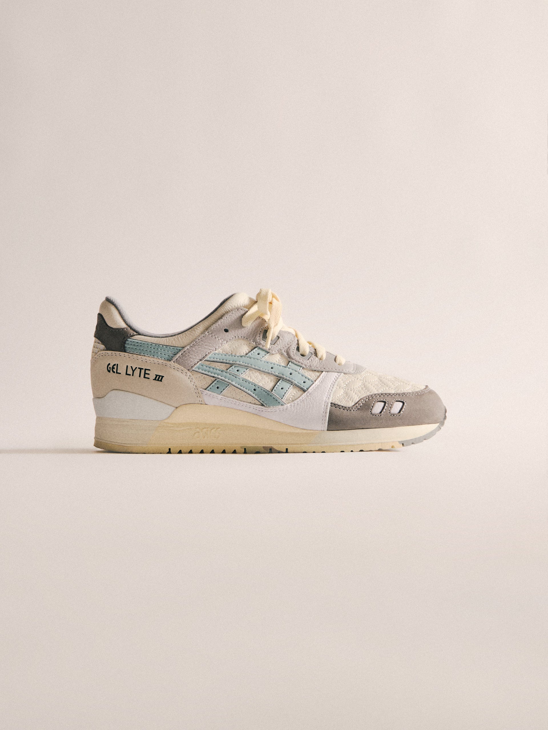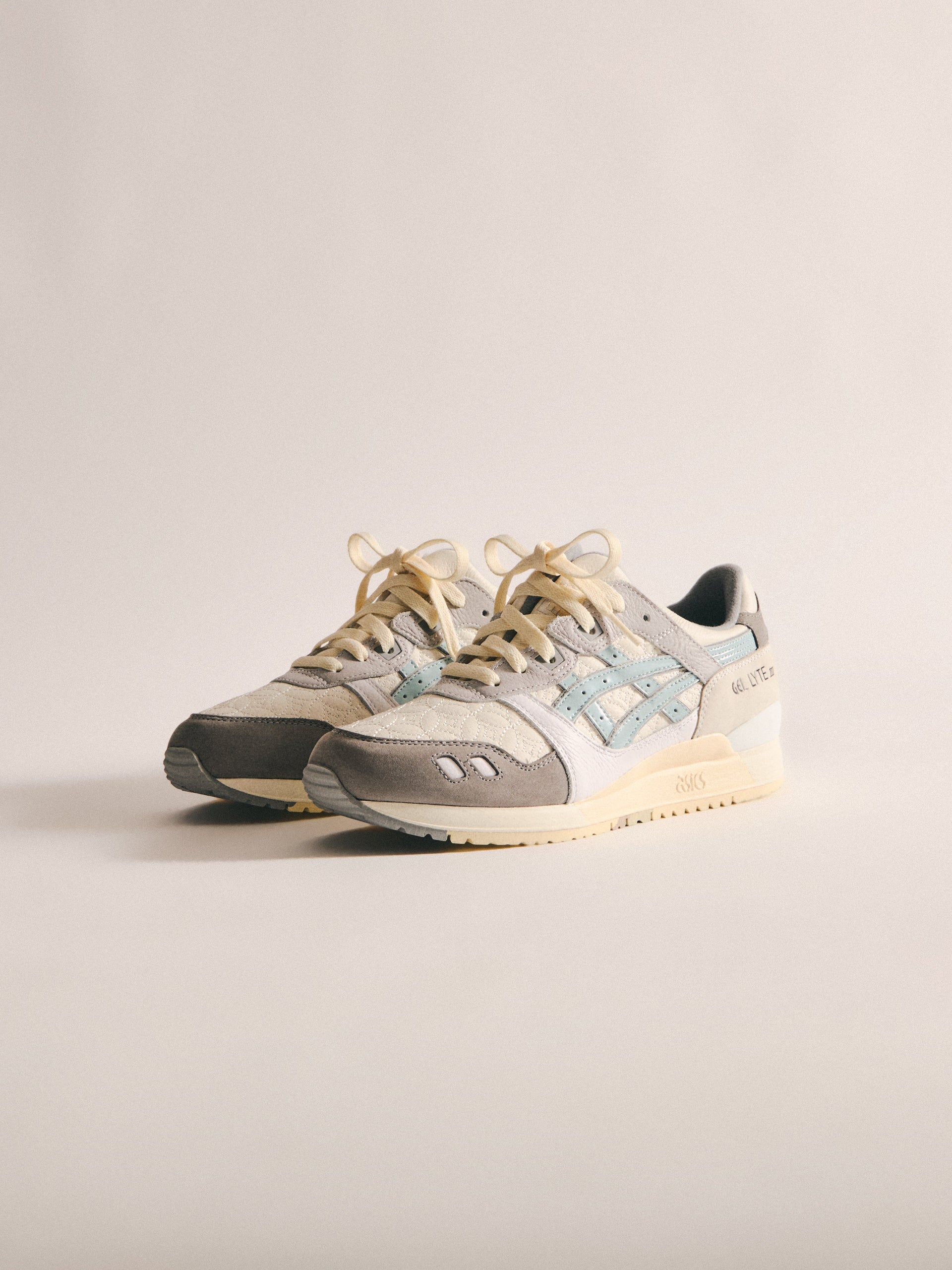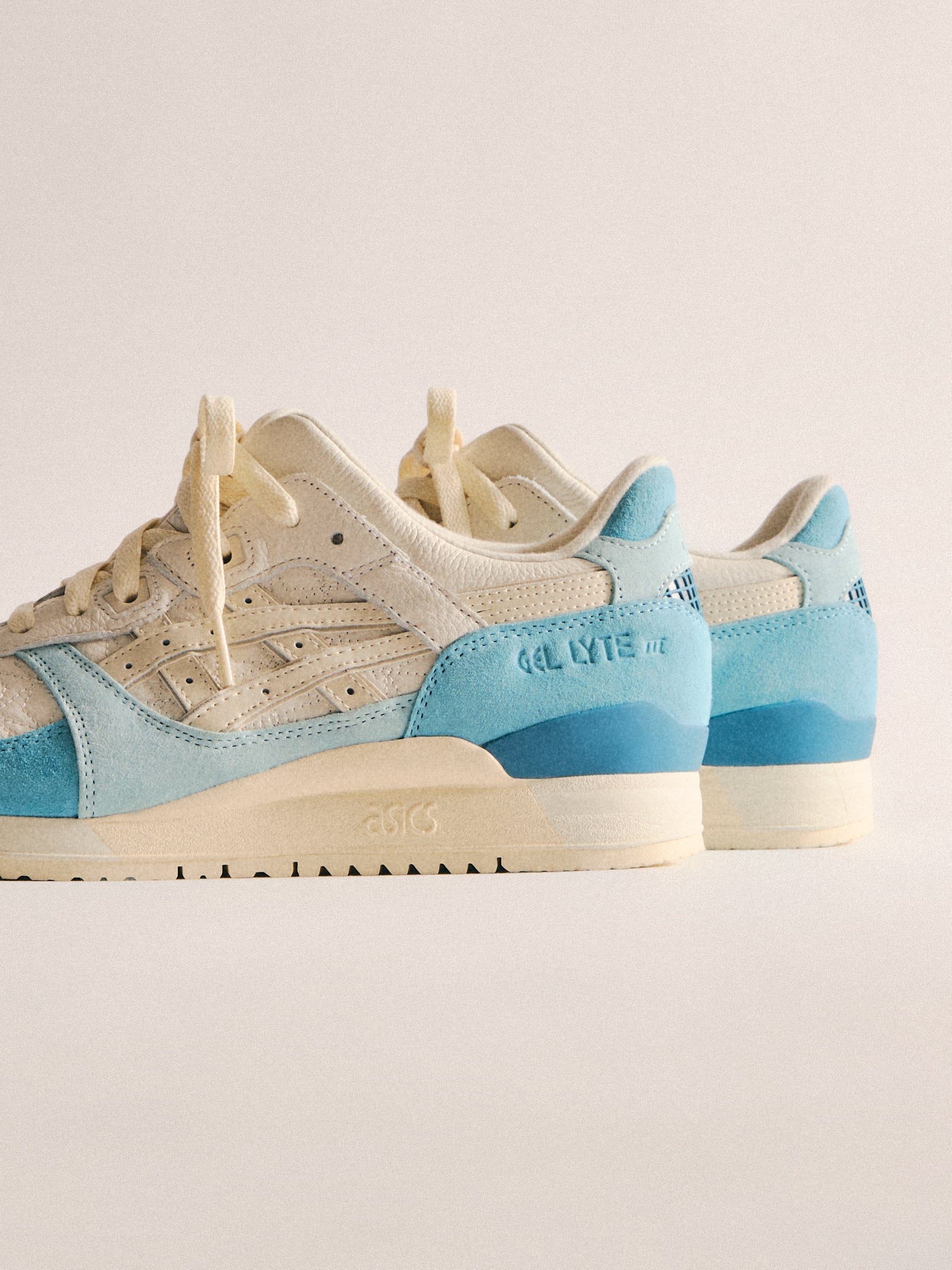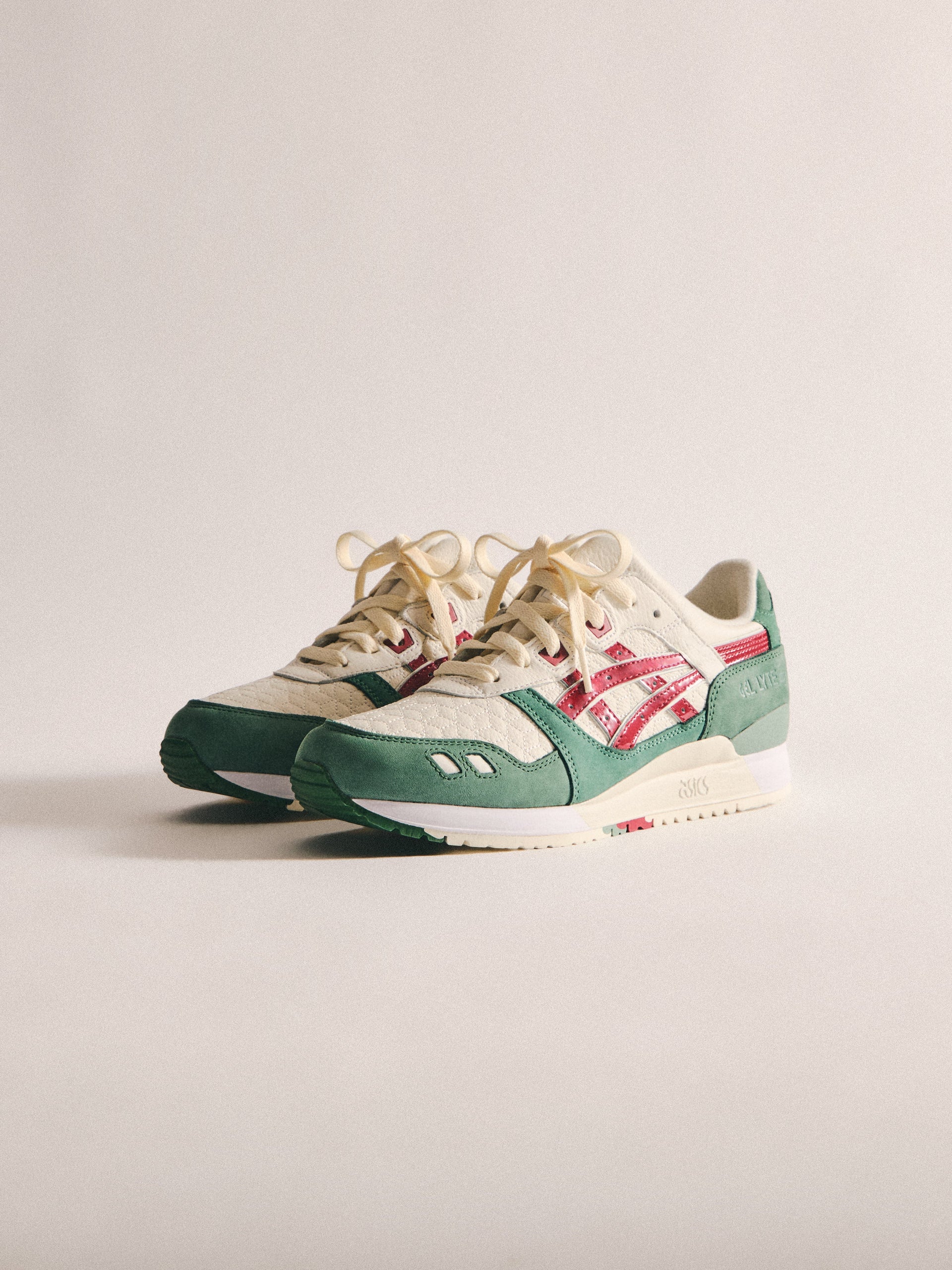本コレクションは、Ronnie Fieg が 2011 年に手がけた初の Kith フットウェアコラボレーションである GEL-LYTE III から始まります。4つのブロッキングで構成されたカラーパレットに、キルティングを施したアンダーレイ、サイドにはパテントレザーのタイガーストライプ、そして Fieg のブランディングをあしらったアイコニックなスプリットタンを組み合わせたデザイン。各モデルには替え紐が付属し、サイドには「GEL-LYTE III」のワードマーク、フットベッドにはコラボレーションロゴが配されています。Ronnie Fieg for ASICS GEL-LYTE III “World’s Fair” は、Brazil、South Korea、Italy、Canada から着想を得たカラーウェイで展開されます。