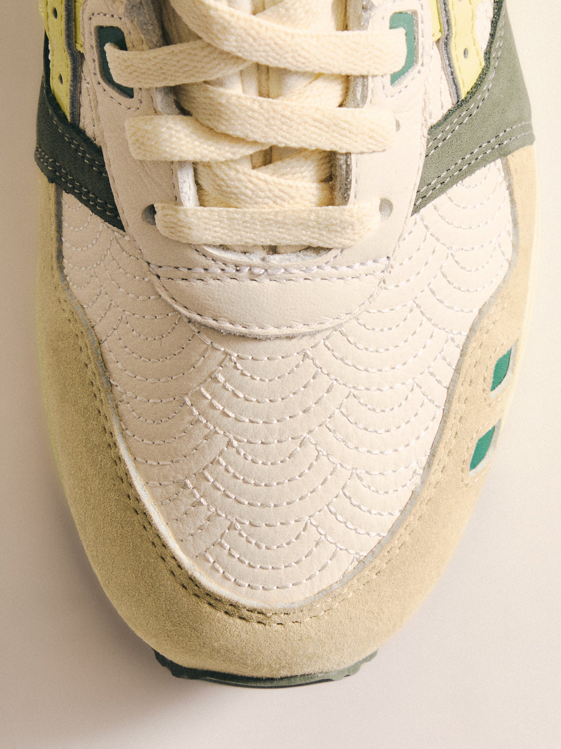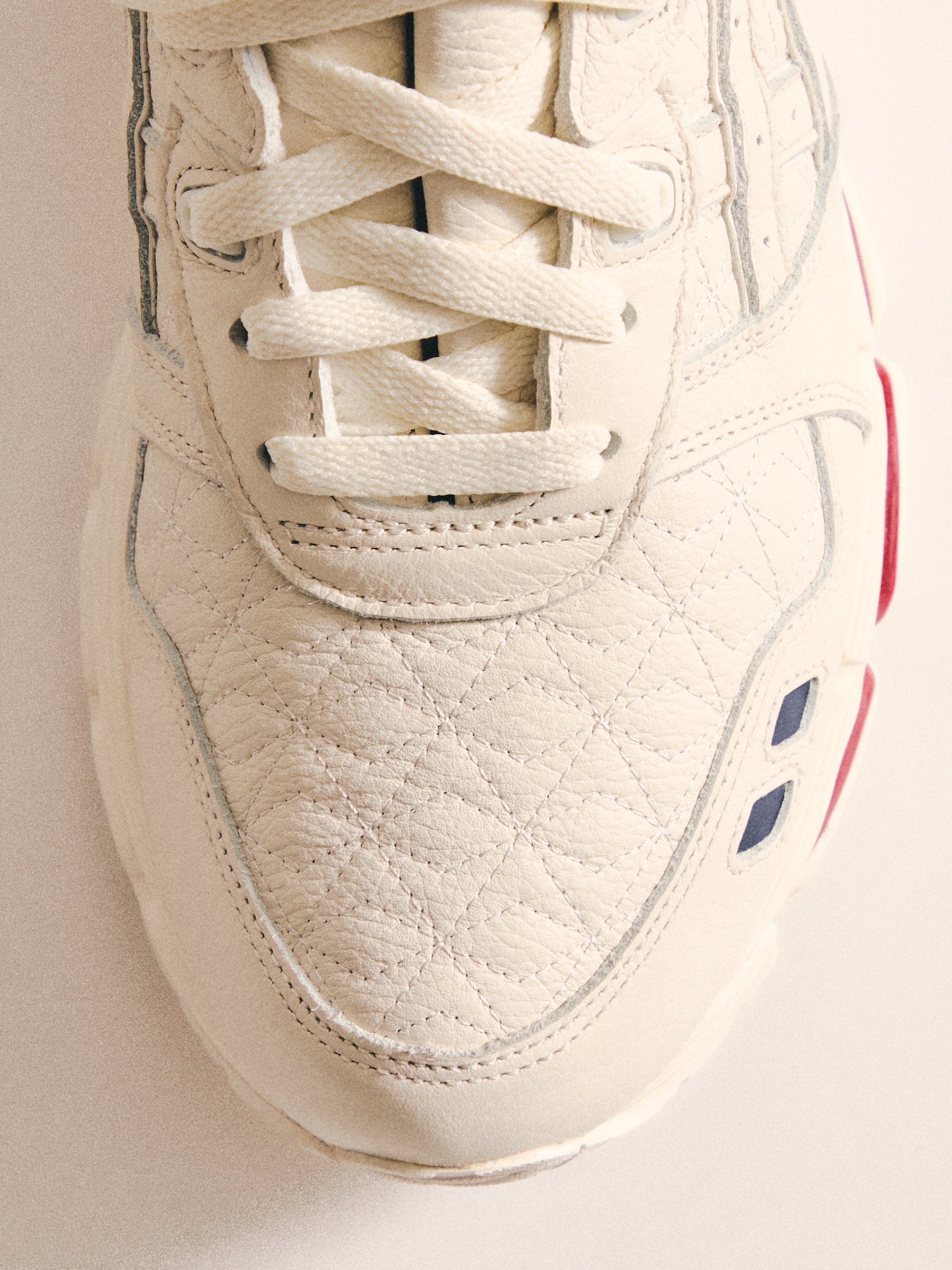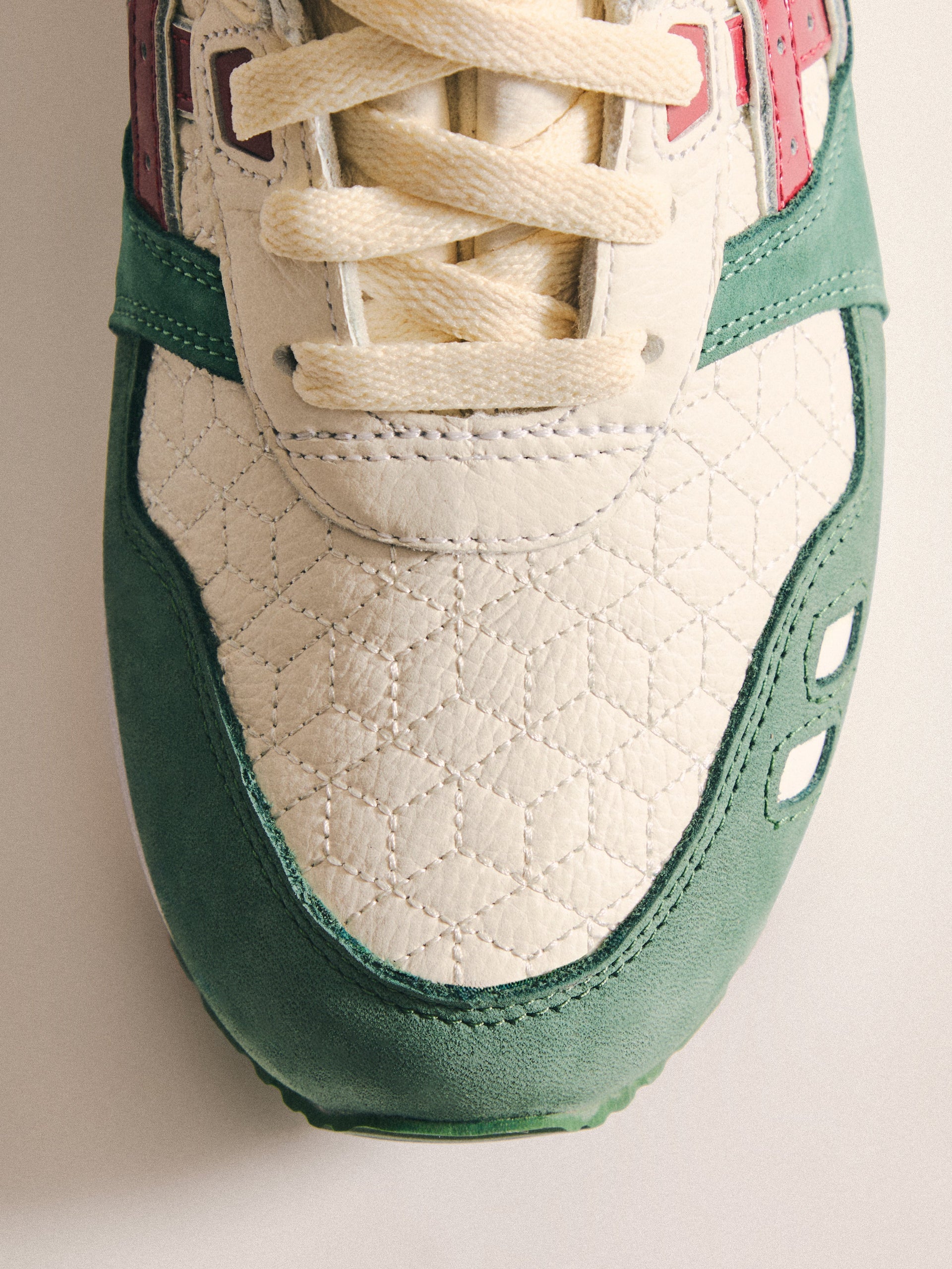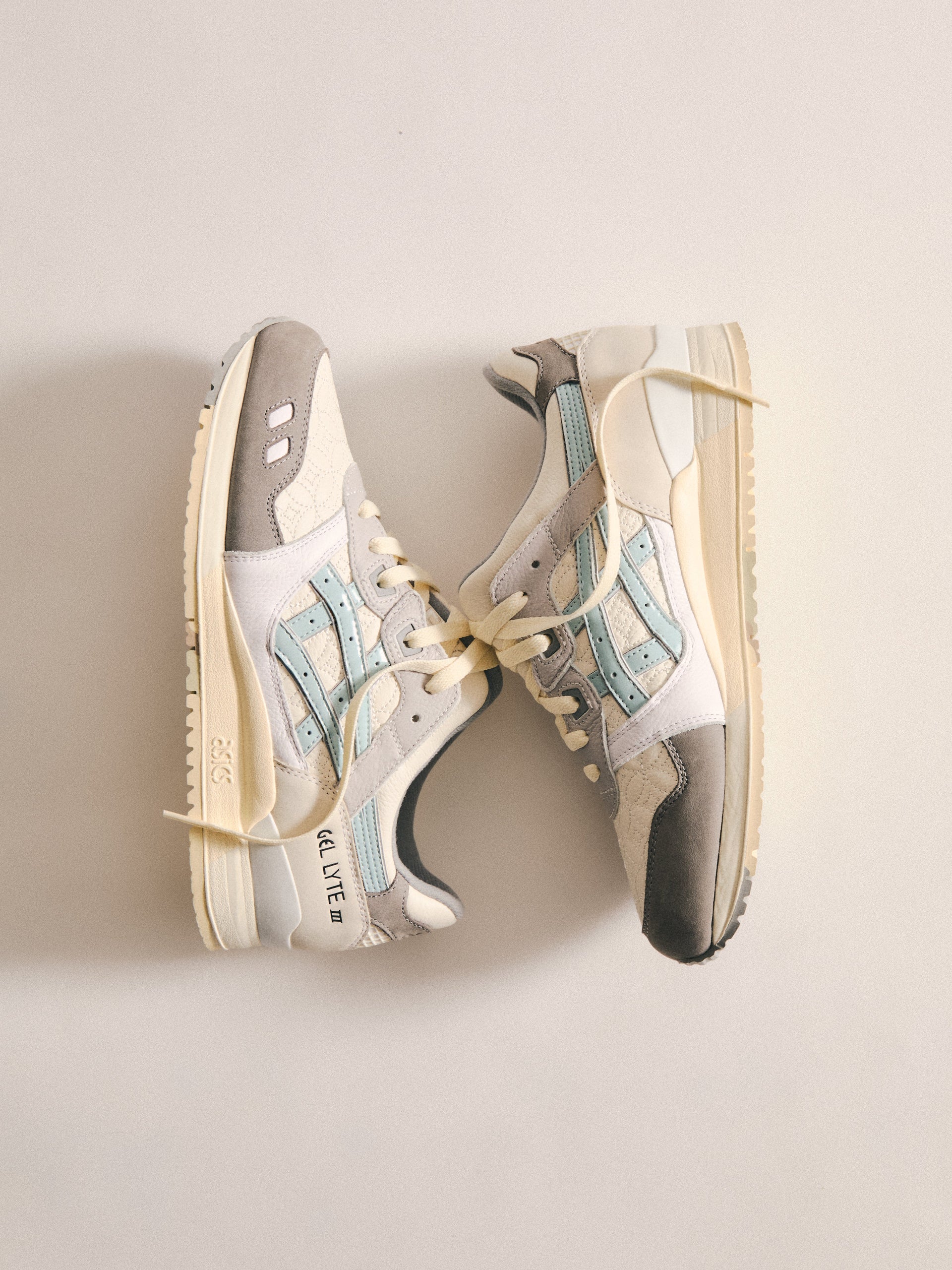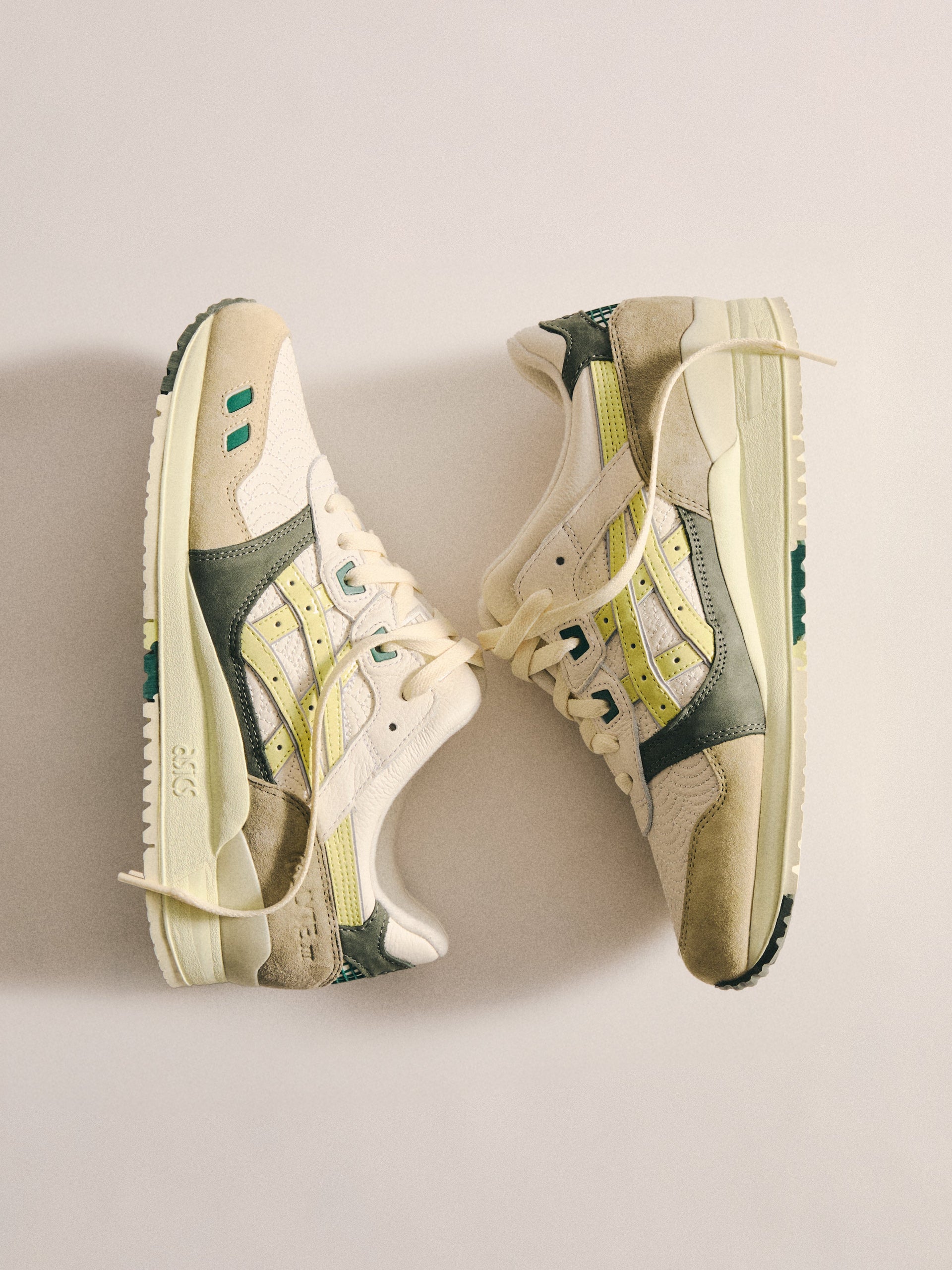 本コレクションは、Ronnie Fieg が 2011 年に手がけた初の Kith フットウェアコラボレーションである GEL-LYTE III から始まります。4つのブロッキングで構成されたカラーパレットに、キルティングを施したアンダーレイ、サイドにはパテントレザーのタイガーストライプ、そして Fieg のブランディングをあしらったアイコニックなスプリットタンを組み合わせたデザイン。各モデルには替え紐が付属し、サイドには「GEL-LYTE III」のワードマーク、フットベッドにはコラボレーションロゴが配されています。Ronnie Fieg for ASICS GEL-LYTE III “World’s Fair” は、Brazil、South Korea、Italy、Canada から着想を得たカラーウェイで展開されます。